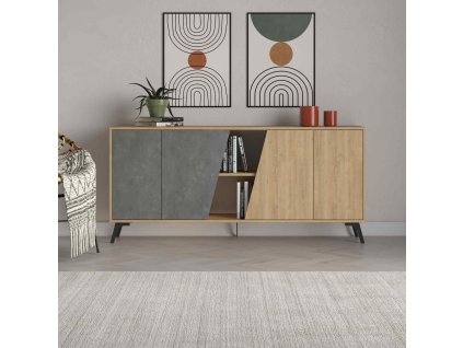 šířka: 180 cm | výška: 82 cm | hloubka: 35.6 cm Konzolový stolek v dubové a retro šedé barvě Seznamte se s - konzolovým stolkem, který přináší kombinaci tradičního dubu a...