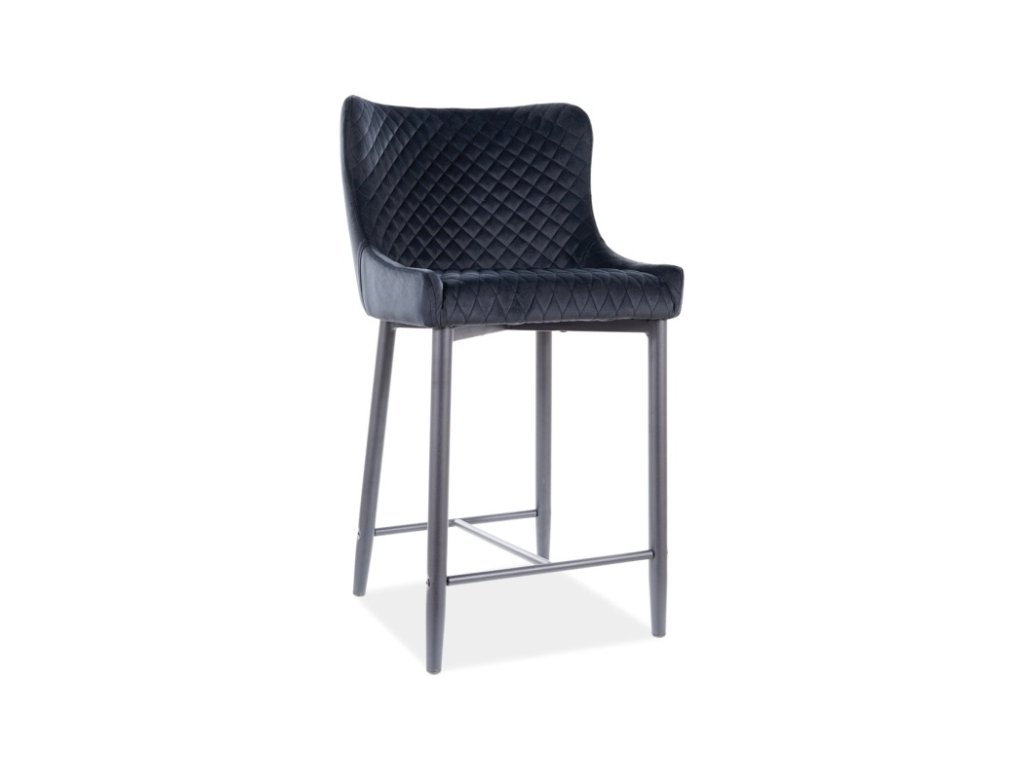 šířka: 45 cm | výška: 92 cm | hloubka: 37 cm Atraktivní čalouněná polo barová židle. Kovová konstrukce je lakovaná černou barvou, čalounění je z látky Bluvel aksamit v černé...