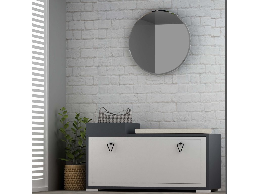 Botník je vyroben z kombinace kvalitního LTD materiálu a látky, což zajišťuje nejen pevnost, ale i pohodlí díky polštářku na sezení. Sedák není namontovaný na nábytku. Elegantní kovové úchytky a výklopné přihrádky přispívají k jeho modernímu vzhledu a funkčnosti. Dodáváme ho v demontu s plastovými nožičkami pro snadnou manipulaci a montáž.