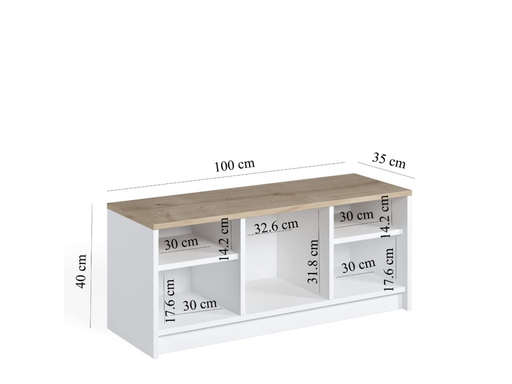 Vyroben z kvalitního LTD materiálu o tloušťce 18 mm, botník zajišťuje pevnost a dlouhou životnost. Je vybaven praktickým regálkem, který umožňuje pohodlné uspořádání bot nebo dalších předsíňových potřeb. Tento botník se snadno začlení do každého interiéru a přidá vaší předsíni styl a funkčnost.
