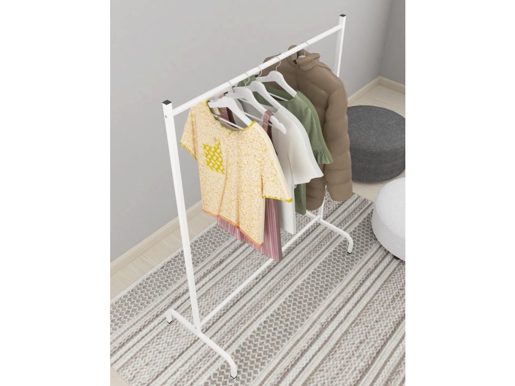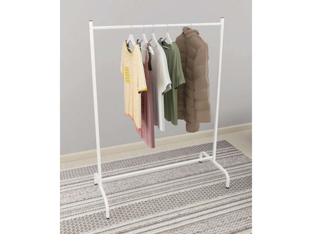 Praktický věšák na šaty je vyroben z kovového rámu. Barevné provedení je bílá. Dodáváme v demontovaném stavu.Doplňkové parametry