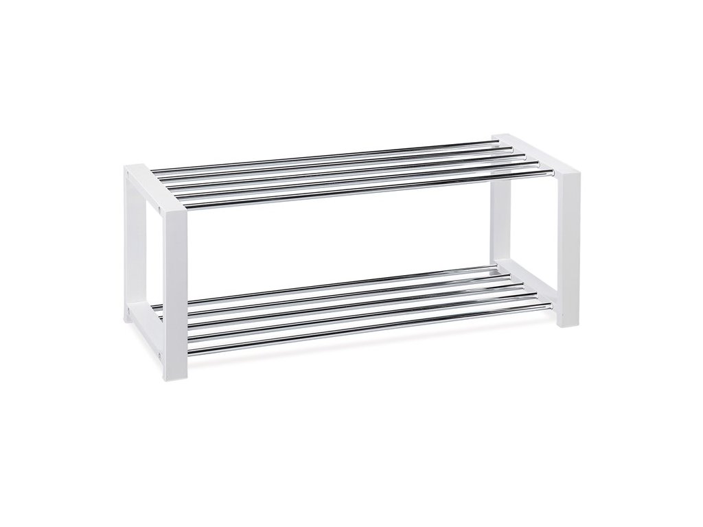 Botník s dvěma chromovanými kovovými policemi a masivními bočnicemi z kaučukovníku v černém matném laku nabízí pevné a stabilní řešení pro uskladnění obuvi. Chromované police jsou odolné vůči opotřebení a snadno se udržují, zatímco masivní dřevěné bočnice dodávají botníku robustní vzhled a dlouhou životnost. Jeho otevřená konstrukce umožňuje dobrou cirkulaci vzduchu, což pomáhá udržet obuv svěží. Kompaktní rozměry a minimalistický design zajišťují snadné umístění v předsíních i menších prostorách.