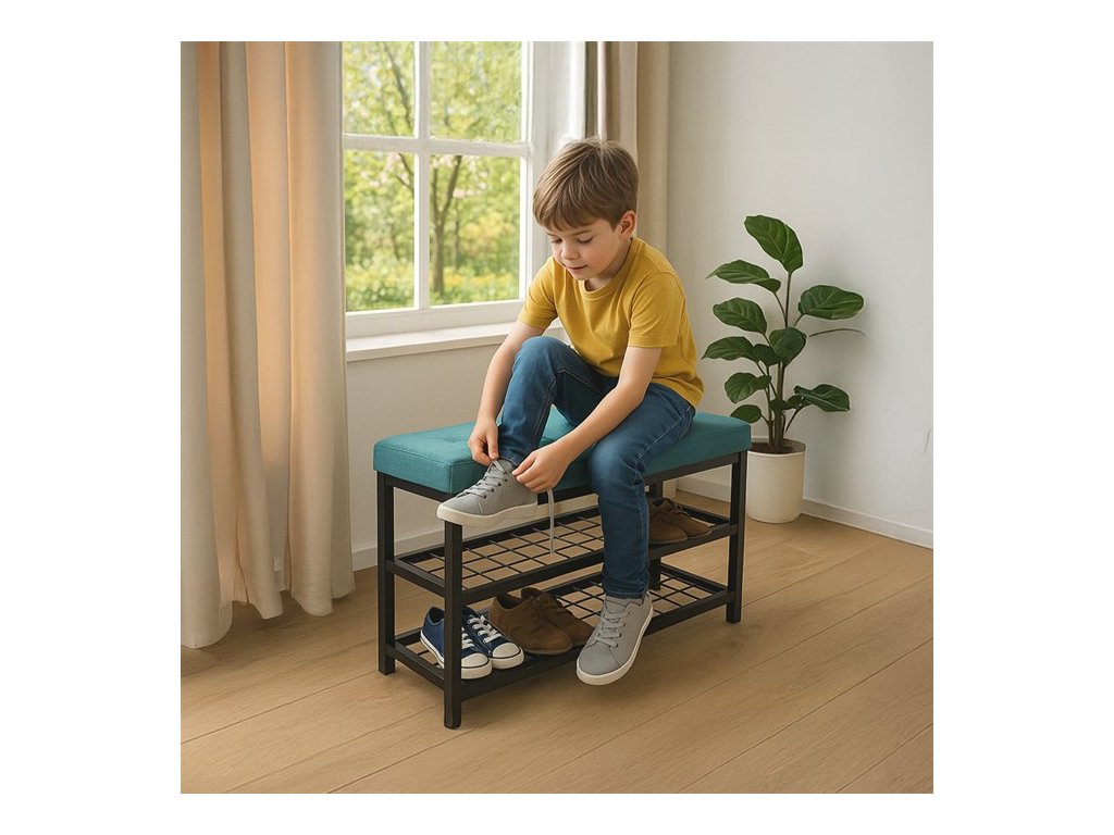 Stylový botník s lavicí značky Autronic přináší kombinaci pohodlí a praktičnosti. Zelené polstrované sedátko nabízí komfort při obouvání, zatímco dvě prostorné kovové police poskytují dostatek místa pro uskladnění obuvi. Stabilní konstrukce z kovu zajišťuje odolnost a dlouhou životnost. Elegantní design v neutrálních tónech snadno zapadne do moderních i tradičních interiérů. Tento botník je ideální volbou pro předsíně, kde pomůže udržet pořádek a zároveň přidá praktický sedací prvek.
