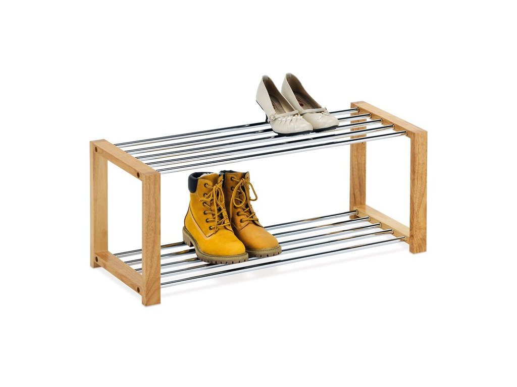 Botník s dvěma chromovanými policemi nabízí praktické a přehledné uspořádání obuvi v přirozeně laděném interiéru. Masivní rám z kaučukovníku v přírodním odstínu zajišťuje pevnost a stabilitu, zatímco lesklé chromované tyče poskytují odolnou plochu pro uložení bot. Díky otevřenému designu je botník vzdušný a snadno se udržuje, což pomáhá udržet obuv v suchu a čistotě. Kompaktní rozměry umožňují umístění do předsíní i menších prostor. Celková konstrukce je navržena pro dlouhou životnost a každodenní používání.