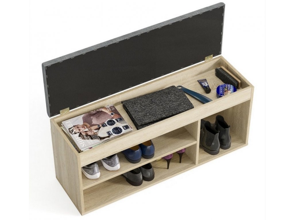 šířka: 100 cm | výška: 48 cm | hloubka: 32 cm Botník s policí je vyrobený z desky LTD v barvě dub sonoma. Pod vyklápěcím polstrovaným sedákem je praktický úložný prostor....