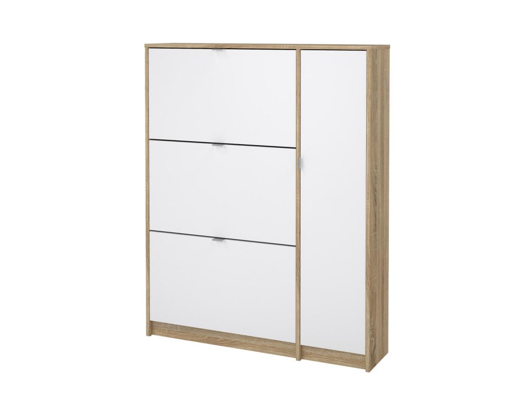 Po prostorném botníku touží každý milovník bot i početná rodina. Boty se hromadí v předsíni, vzniká chaos a zakopávání o boty je na denním pořádku. Zachraňte svou předsíň před nepořádkem a pořiďte si tento úžasný botník s výklopnými dvířky a skříňkou. Díky svému provedení pojme botník Flap opravdu velké množství bot. Do každé výklopné přihrádky můžete ukládat boty ve dvou řadách a skříňka poslouží např. k ukládání přípravků na čištění a údržbu bot, nebo k odložení drobných svršků jako jsou čepice, rukavice apod.