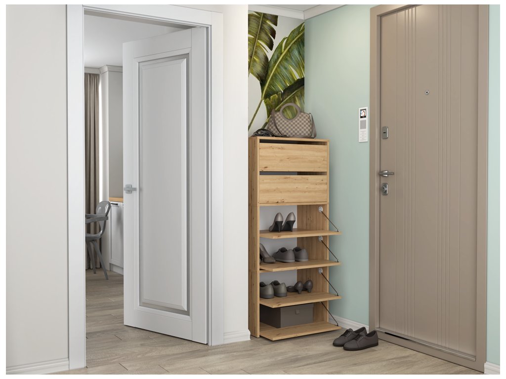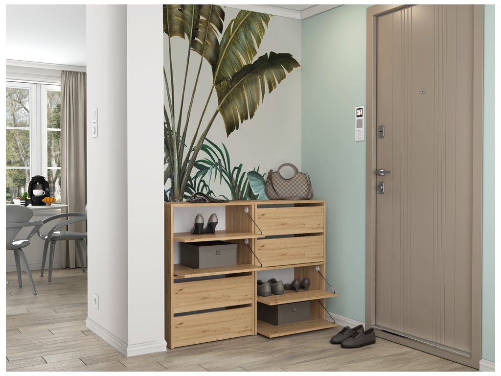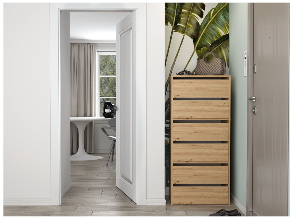 šířka: 60 cm | výška: 116 cm | hloubka: 28 cm Výklopný botník PAULA v moderním provedení se skvěle hodí do každé předsíně.Hlavní výhody: 3 dvojité vyklápěcí přihrádkySnadné...