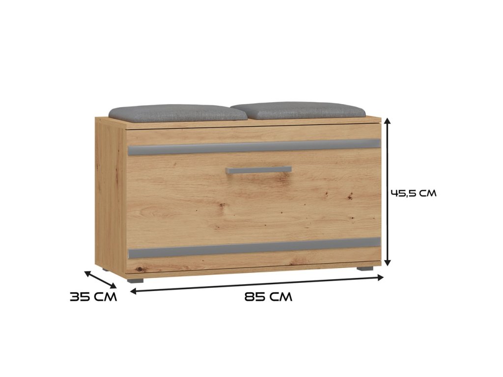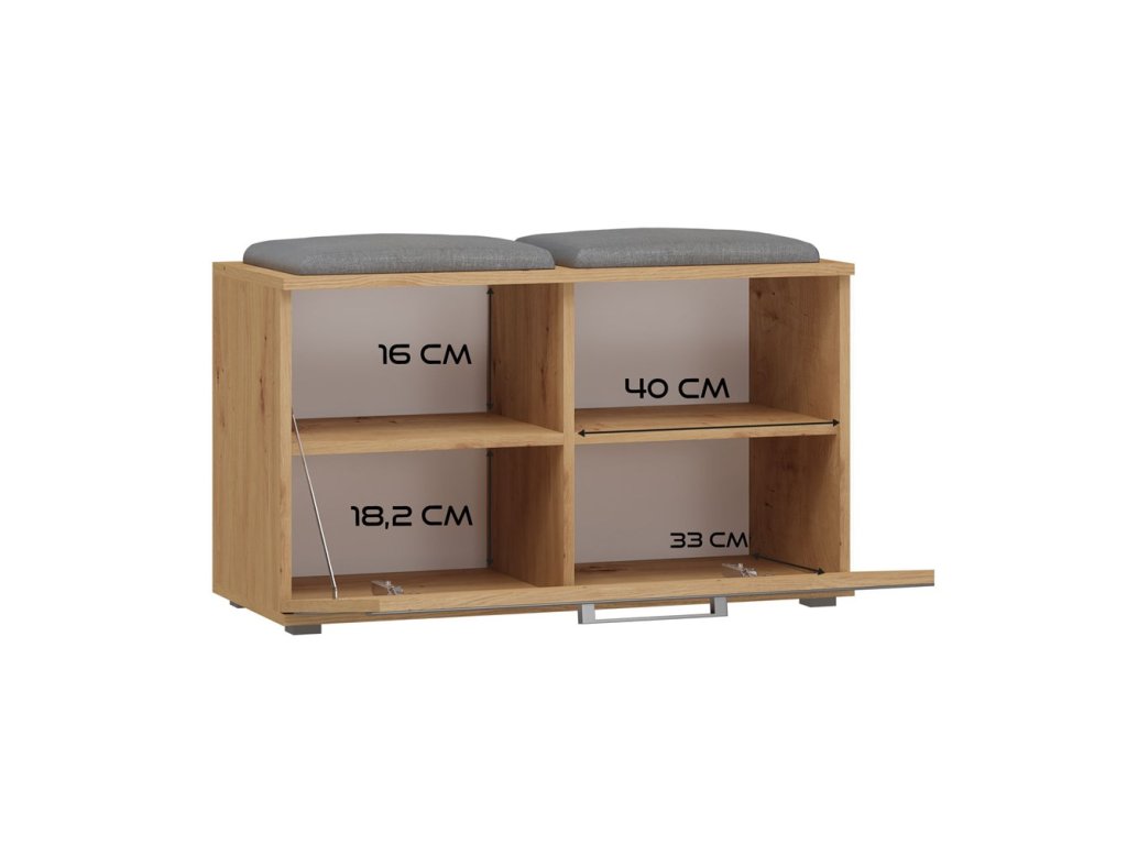 Praktický botník OPAL zútulní každý vstupní prostor vašeho bytu či domu. Obsahuje 4 prostorné police na obuv pro 8-9 páru bot a pohodlný čalouněný dvojsedák. Vyrobeno z kvalitní LTD desky, která má tloušťku 16 mm a je nenáročná na údržbu. Dodáváme v demontu. V naší další nabídce naleznete další produkty ze série OPAL.Doplňkové parametry