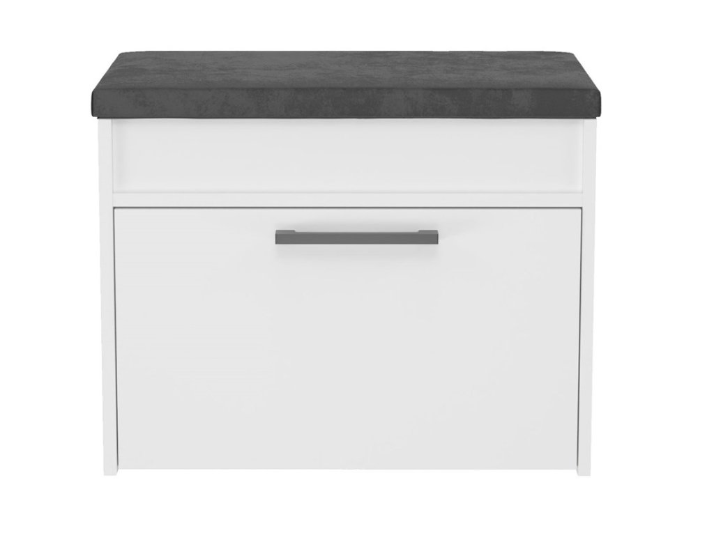 šířka: 50 cm | výška: 47 cm | hloubka: 34 cm Botník s výklopnými dvířky a polstrovaným sedákem je vyroben z desky LTD v kombinaci barev borovice sněžná/antracit. Dodáváme v...