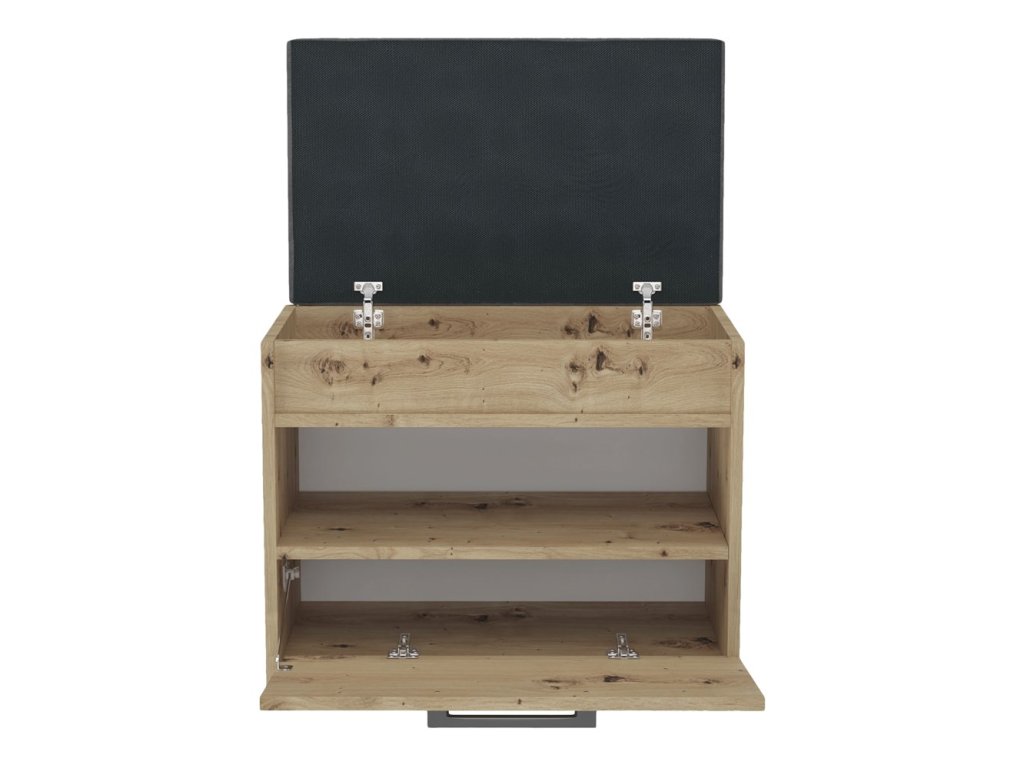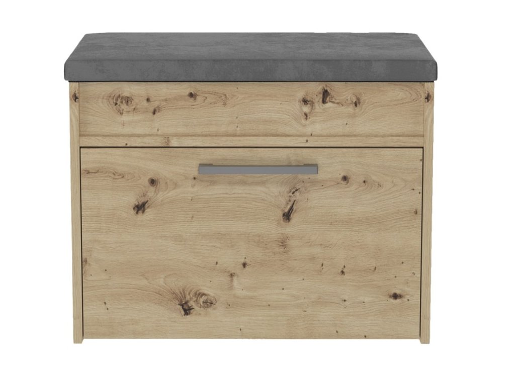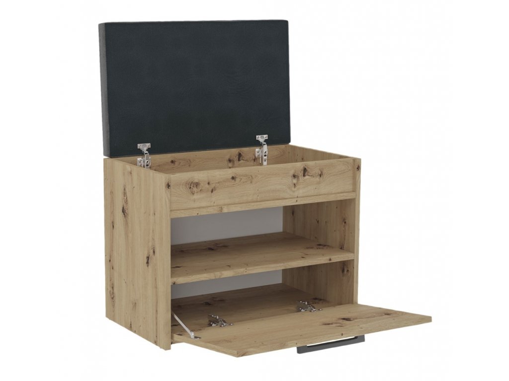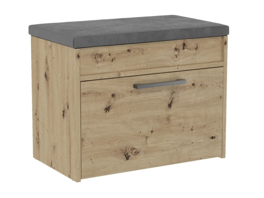 šířka: 105 cm | výška: 54 cm | hloubka: 34 cm Botník jednodveřový se sedákem je vyroben z desky LTD v barvě dub artisan. V pravé části jsou police na boty. Úchyty jsou plastové....
