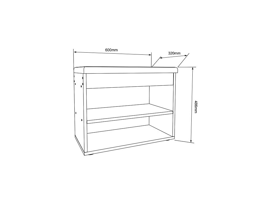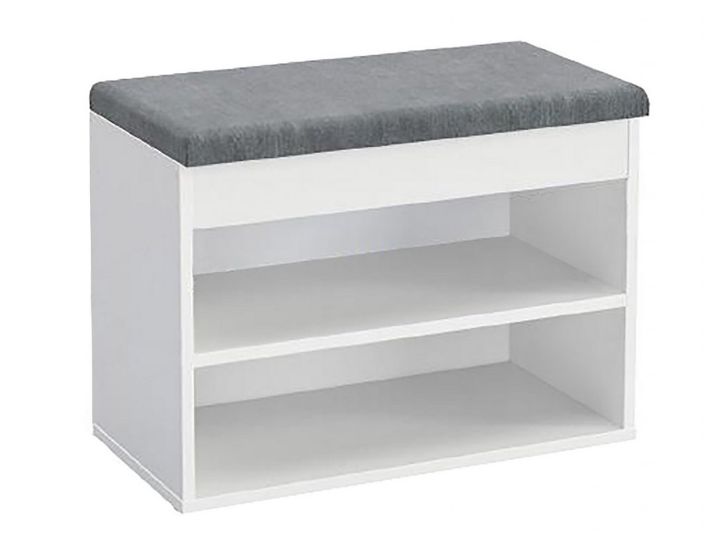 Botník s policí je vyrobený z desky LTD v barvě bílá. Pod vyklápěcím sedákem je praktický úložný prostor. Barevné provedení sedáku se může od obrázku lišit. Dodáváme v demontovaném stavu.
