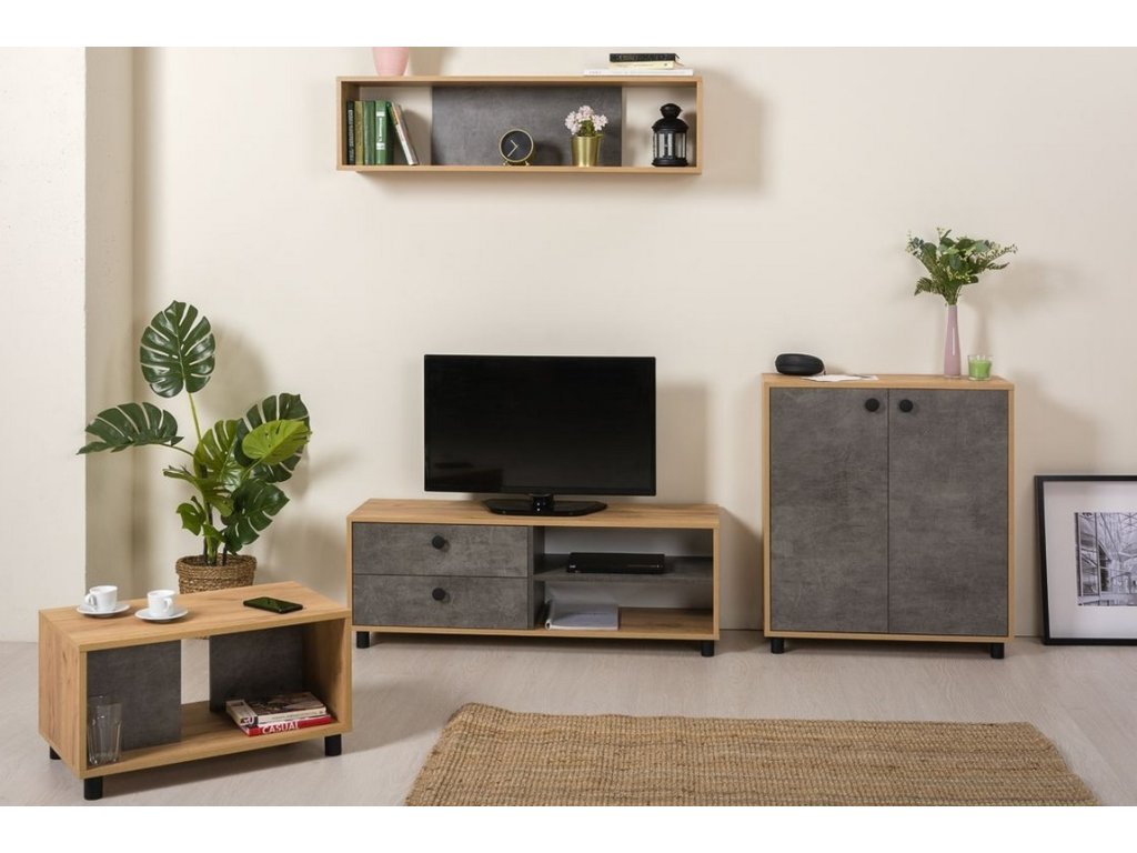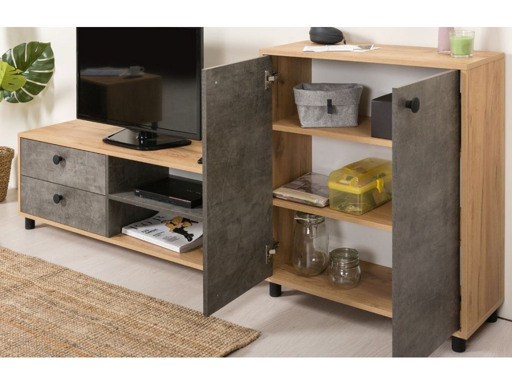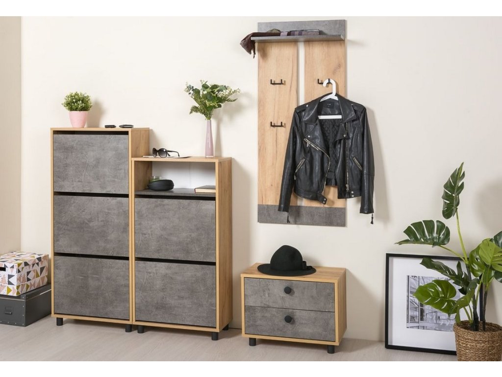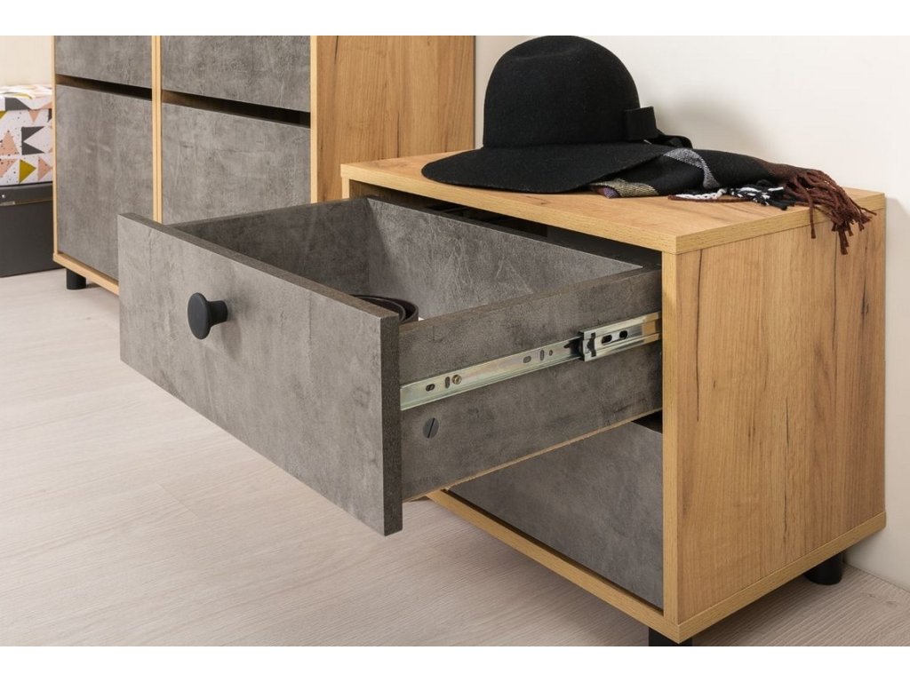 Botník se zásuvkami CALEB dub kraft zlatý/tmavý kámen