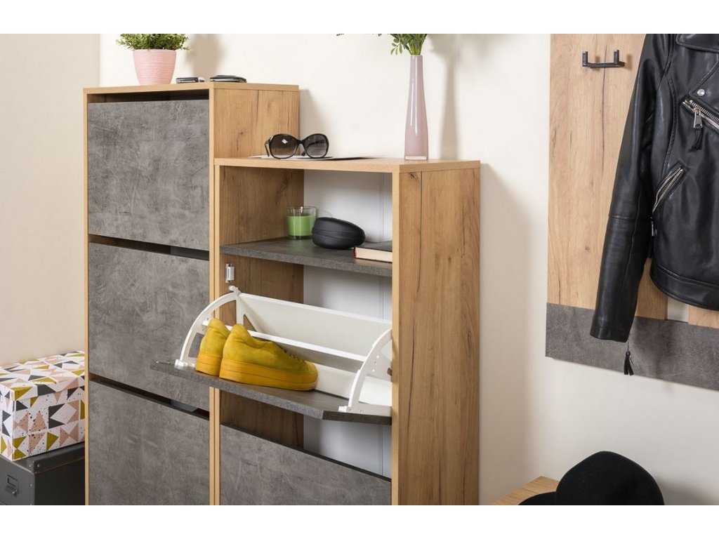 šířka: 83 cm | výška: 109 cm | hloubka: 32 cm O stylový design Vaší vstupní části se postará moderní botník Kombinace moderních barev jako dub Artisan v kombinaci s bílou...