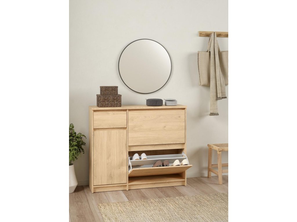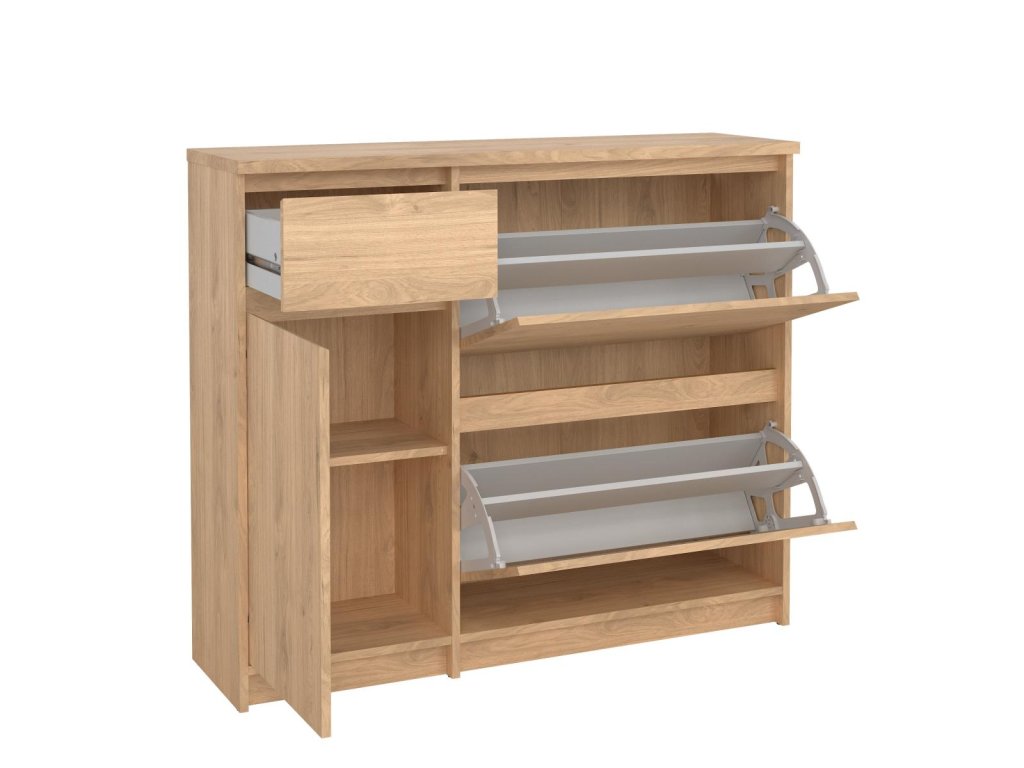 šířka: 55 cm | výška: 94 cm | hloubka: 34 cm Botník s výklopnými dvířky je vyroben z desky LTD v barvě dub artisan. V horní části je praktická zásuvka. Úchyty jsou plastové....
