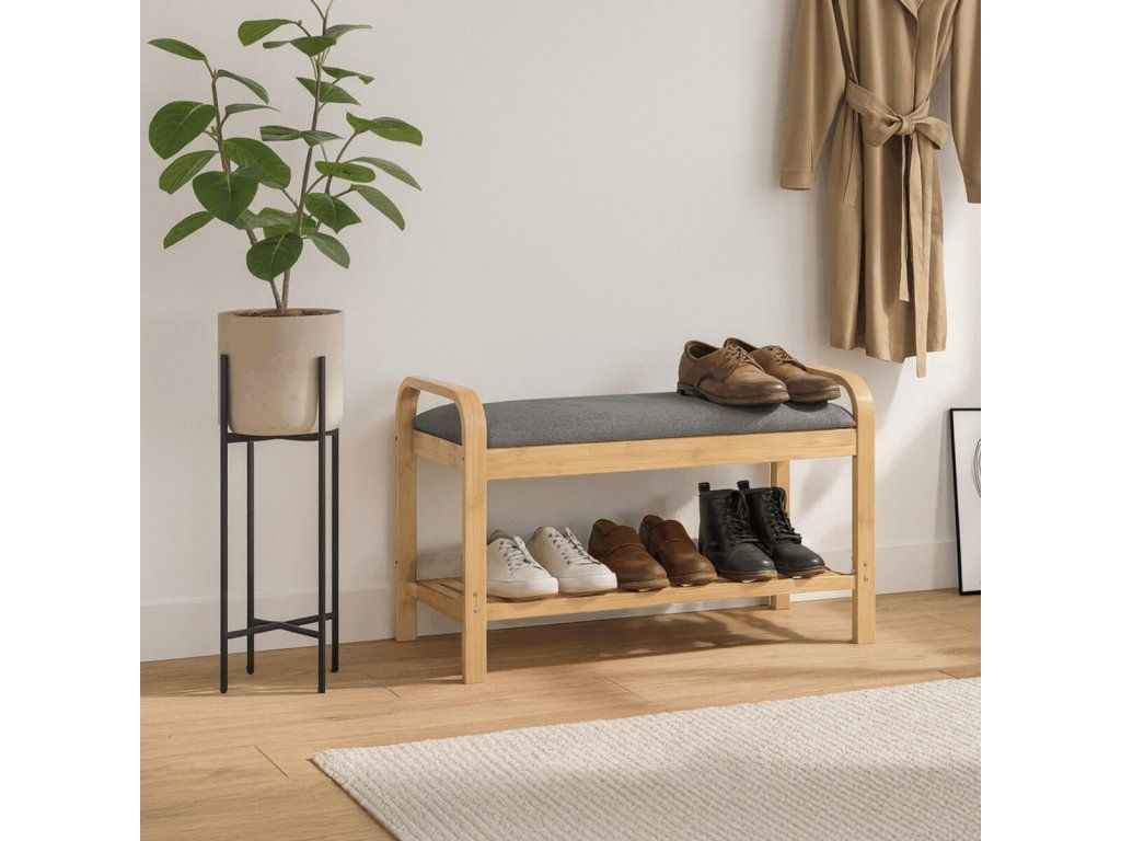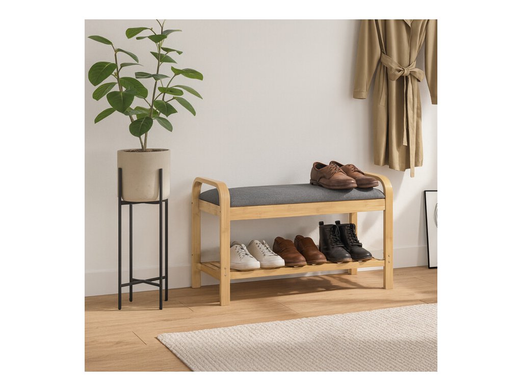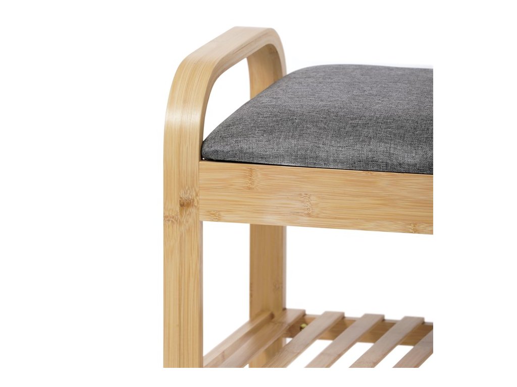 Stylový a praktický botník z kvalitního bambusu kombinuje úložný prostor s pohodlným místem k sezení. Botník má přírodní barvu, která se snadno sladí s jakýmkoliv interiérem. Polstrovaný sedák v šedé barvě poskytuje komfort při obouvání. Tento botník je ideální volbou pro ty, kdo hledají funkční a estetické řešení pro ukládání bot a zároveň ocení pohodlí při každodenním používání. Skvělý doplněk do moderního domova.