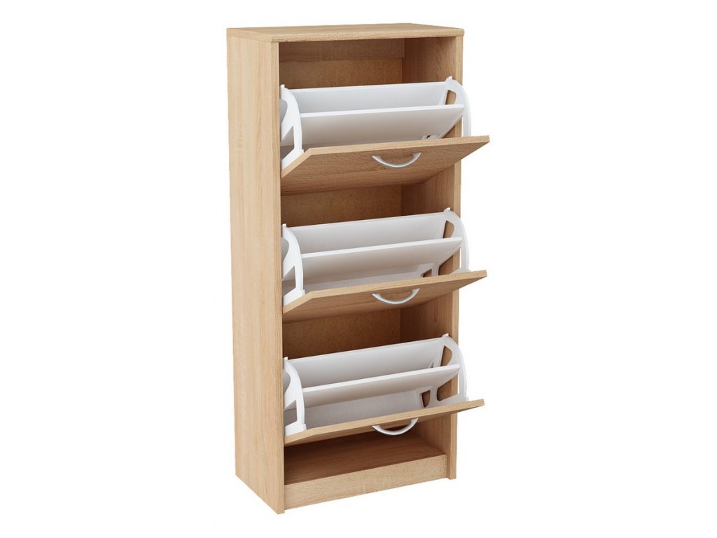 Třídveřový výklopný botník v moderním provedení. Korpus i dvířka jsou z kvalitního LTD v barvě dub sonoma. Lamino je odolné vůči vysokým teplotám, poškrábání a nárazům, hraněné ABS páskou. Jasně viditelná struktura dřeva. Dodáváme v demontovaném stavu.