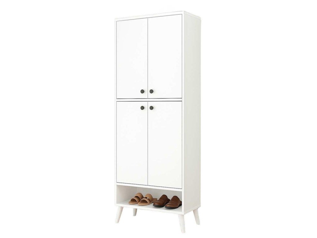 Praktická víceúčelová skříň se 4 dveřmi a 8 policemi, vhodná jako botník, úložná skříňka do koupelny, kávový koutek nebo pro využití na balkon.