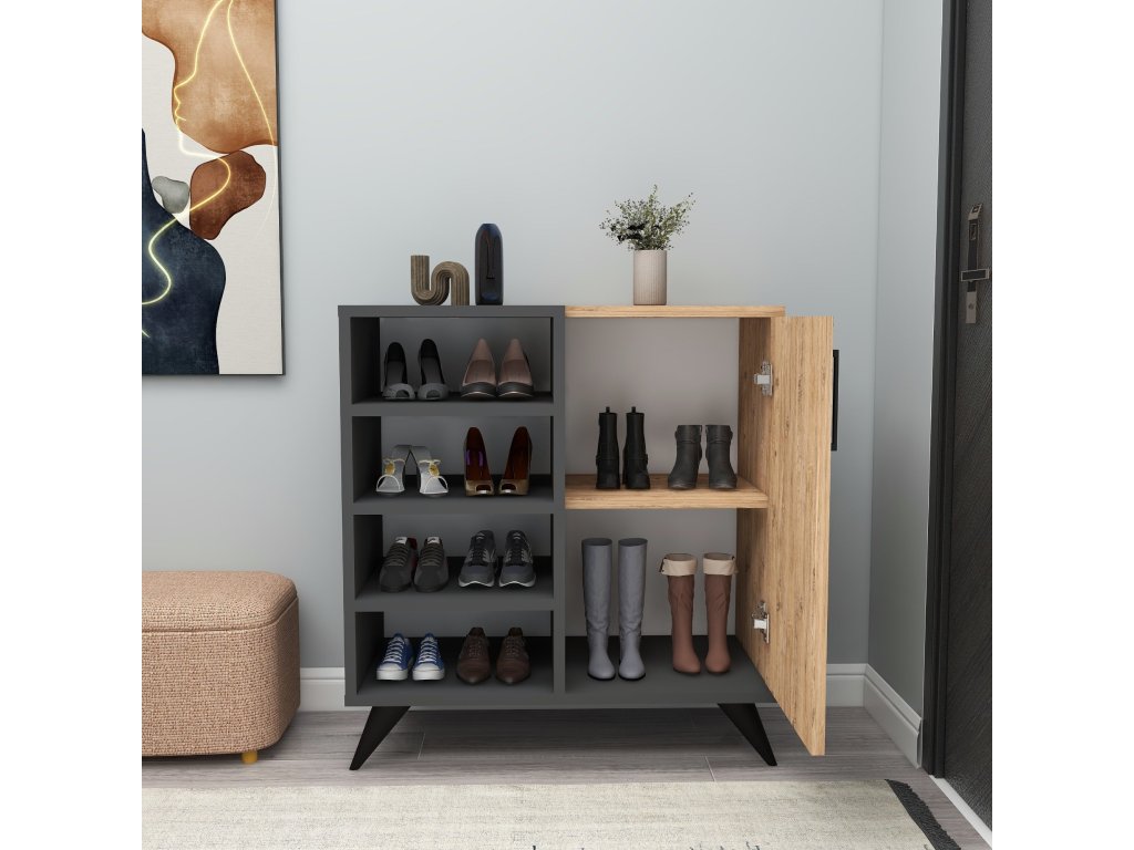 Botník je ideálním řešením pro organizaci vaší obuvi v předsíni. Díky plnému dvířku a regálku poskytuje dostatek úložného prostoru pro uskladnění bot a dalších nezbytností. Jeho moderní design v kombinaci s praktickými funkcemi zajišťuje, že se stane stylovým doplňkem každého interiéru.