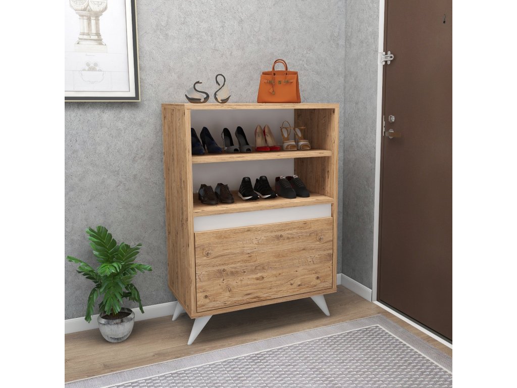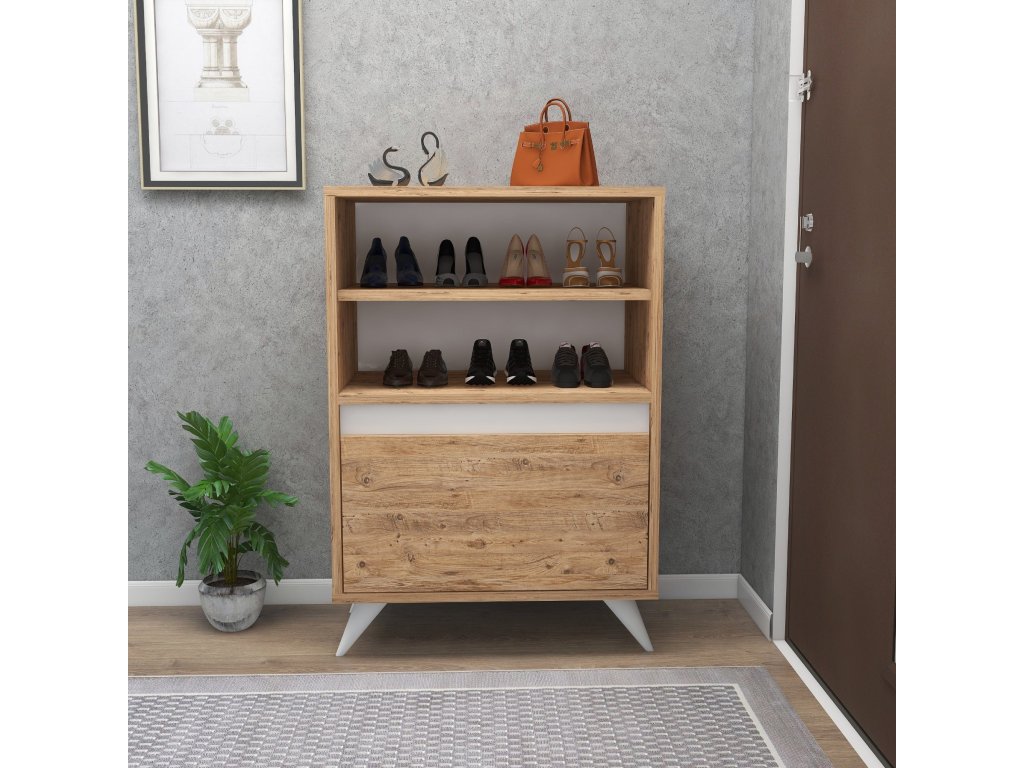 Botník je ideálním řešením pro uspořádání obuvi a předsíňových doplňků. Díky výklopným přihrádkám a regálku nabízí dostatek úložného prostoru a zároveň zachovává elegantní a moderní vzhled. Jeho kompaktní rozměry a kvalitní materiály z něj činí skvělou volbu pro každou předsíň.