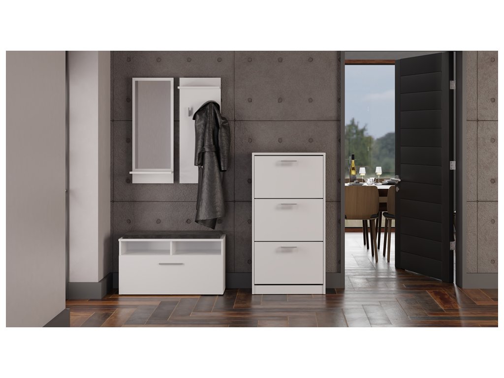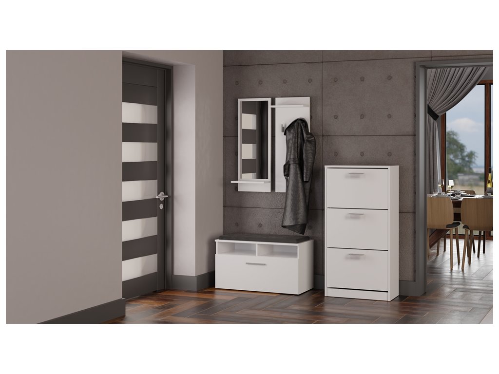 šířka: 60 cm | výška: 45 cm | hloubka: 30 cm Botník v moderním provedení. Korpus z lamina je v barvě matná bílá, přední strana z MDF také v bílém matu. Lamino i MDF jsou odolné...