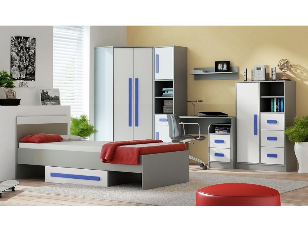 Skříňka ze sektorové řady GYT, která se vyznačuje netradičním zpracováním barev a originalitou úchytů. Tento styl nábytku zaujme každou mladší generaci. Skříň je vyrobena z kvalitní LTD desky hraněné ABS lištou. Korpus je v barvě šedá antracit, dveře jsou bílé matné. Úchytky jsou v modré barvě. Uvnitř skříňky jsou police. Sektorový nábytek GYT má široký výběr prvků, který Vám zaručí sestavit si dětský nebo studentský pokoj, ložnici či kancelář podle svých potřeb, přání a představ. Dodáváme v demontovaném stavu.Doplňkové parametry