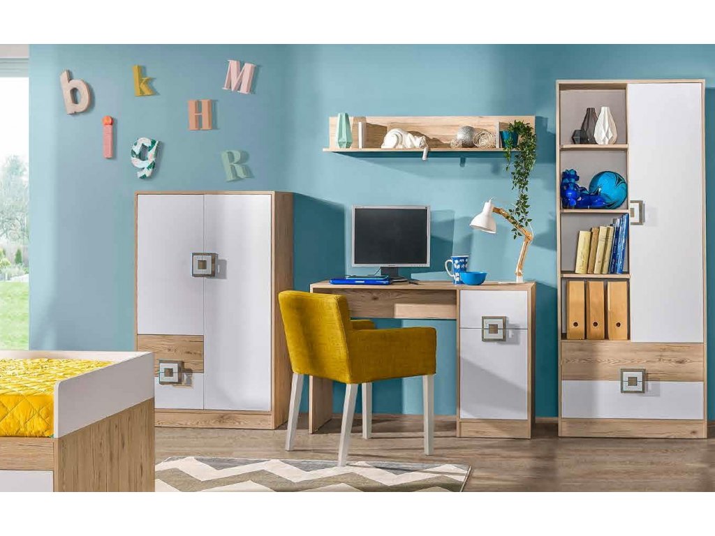 Dětský pokoj NIKO, který se vyznačuje netradičním zpracováním barev a originalitou úchytů. Tento styl nábytku zaujme každou mladší generaci. Sestava se skládá ( šxhxv ) - regál ( 80 x 40 x 190 cm ), komoda ( 80 x 40 x 130 cm ), pc stolek ( 120 x 50 x 78 cm ) a police ( 120 x 20 x 20 cm ). Nábytek je vyrobena z kvalitní LTD desky hraněné ABS lištou. Korpus je v barvě dub jasný, dveře jsou v kombinaci barev bílá mat / dub jasný. Úchytky jsou v barevné kombinaci dub jasný / bílá. Jednotlivé díly lze koupit zvlášť. Sektorový nábytek NIKO má široký výběr prvků, který Vám zaručí sestavit si dětský nebo studentský pokoj, ložnici či kancelář podle svých potřeb, přání a představ. Dodáváme v demontovaném stavu.Doplňkové parametry