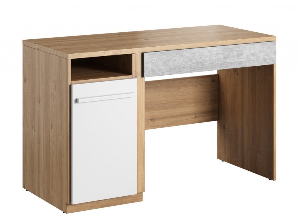 šířka: 120 cm | výška: 76 cm | hloubka: 55 cm Pracovní stůl jednodveřový se zásuvkou v moderním stylu. Korpus je vyroben z desky LTD v barvě dub nash, dvířka a čelo zásuvky jsou...