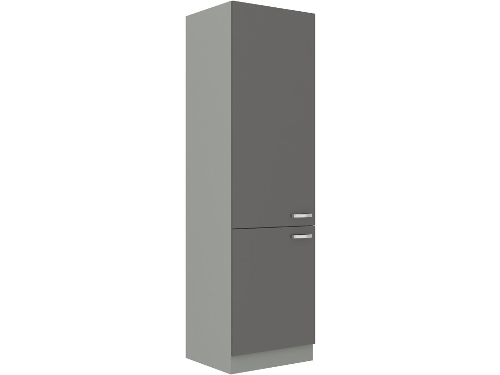 Potravinová skříň - spíže GREY vyrobená z kvalitního lamina a MDF. Korpus i sokl ( 10 cm ) jsou v barvě šedá a dvířka v barvě grey šedá v lesku. Rozměry skříňky - šířka 60 cm, výška 210 cm, hloubka 57 cm. Skříň má levé otvírání dvířek. Úchyty jsou z kovu. V naší nabídce naleznete další výběr skříněk k sestavení celé kuchyně.Doplňkové parametry