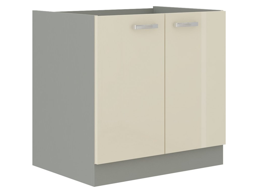 Dolní skříňka dvoudveřová KARMEN vyrobená z kvalitního lamina a MDF. Korpus, sokl ( 10 cm ) je v barvě šedá a dvířka jsou v barvě karmen krémová v lesku. Rozměry skříňky - šířka 80 cm, výška 82 cm, hloubka 52 cm ( s pracovní deskou zabere 60 cm ). Vzadu se nechává volný prostor. Pracovní deska není v ceně. Úchyty jsou z kovu. V naší nabídce naleznete další výběr skříněk k sestavení celé kuchyně.Doplňkové parametry