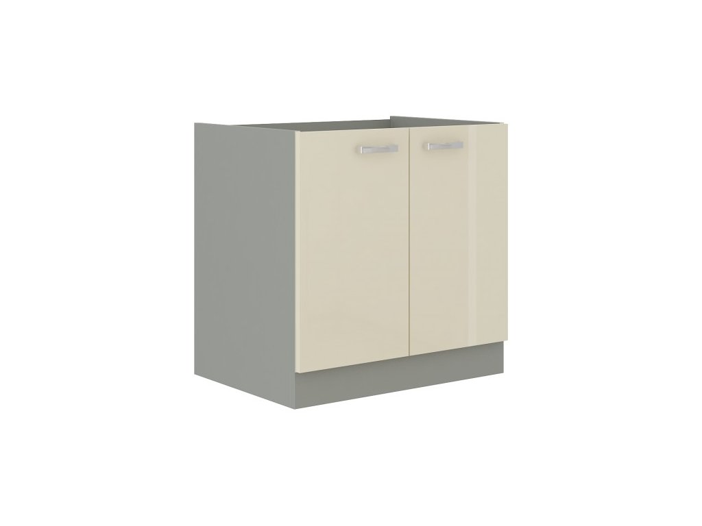 Dolní skříňka pod dřez KARMEN vyrobená z kvalitního lamina a MDF. Korpus, sokl ( 10 cm ) je v barvě šedá a dvířka jsou v barvě karmen krémová v lesku. Rozměry skříňky - šířka 80 cm, výška 82 cm, hloubka 52 cm. Skříňka nemá zadní desku kvůli odpadním trubkám. Skříňka neobsahuje pracovní desku, což je vhodné při koupi celoplošného dřezu. Při koupi vestavného dřezu je třeba pracovní desku doobjednat. Úchyty jsou z kovu. V naší nabídce naleznete další výběr skříněk k sestavení celé kuchyně.Doplňkové parametry