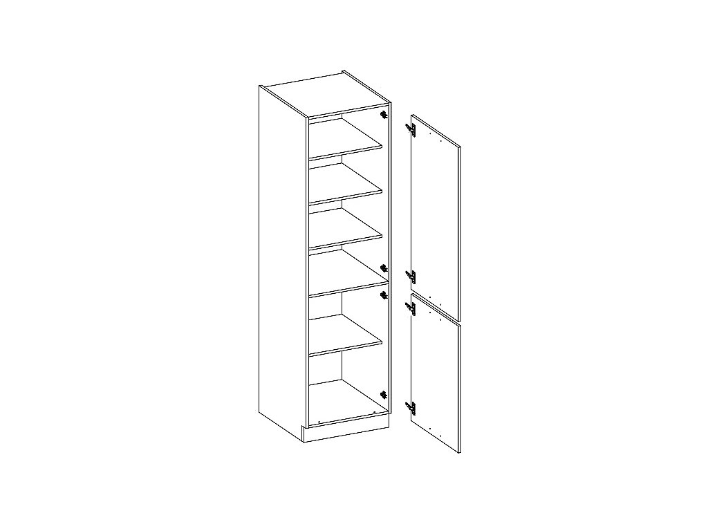 Potravinová skříň - spíže KARMEN vyrobená z kvalitního lamina a MDF. Korpus i sokl ( 10 cm ) jsou v barvě šedá a dvířka v barvě karmen krémová v lesku. Rozměry skříňky - šířka 40 cm, výška 210 cm, hloubka 57 cm. Skříň má pravé otvírání dvířek. Úchyty jsou z kovu. V naší nabídce naleznete další výběr skříněk k sestavení celé kuchyně.Doplňkové parametry