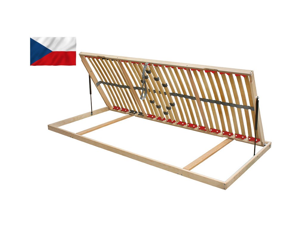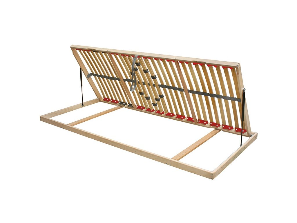 Lamelový rošt ze dřeva v šíři 80 cm pravý. Rošt má 28 lamel v pružných kaučukových pouzdrech ( kaučukové výkyvné duo kapsy na kolíku ). Rovnoměrně rozkládá váhu těla na plochu matrace, obsahuje posuvné objímky pro individuální nastavení tuhosti v bederní oblasti ( 5 výztuh ). Obsahuje také středový popruh pro zlepšení stability roštu. Nosnost roštu je 120 kg. Rošt je výklopný pomocí plynových pístů. Vhodný k postelím s úložným prostorem, kde vkládáte věci z boku.Doplňkové parametry