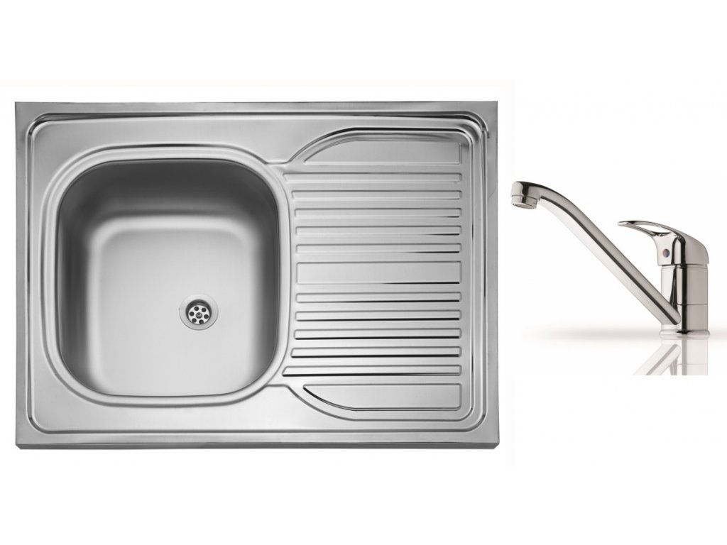 Nerezový dřez se stojánkovou baterií ( sestava ) vyrobený nejmodernější technologií z materiálu Cr Ni 18/10 (DIN 1.4301) největší jakosti ( tloušťka 0,5 mm ). Tato potravinářská ocel s vysokým obsahem chrómu a niklu je nejvhodnější pro výrobu nerezových dřezů, mezi největší přednosti patří odolnost proti korozi i při narušeném povrchu, odolnost proti vysokým teplotám, vysoká životnost a hygiena. Dřez se neloupe, nemůže prasknout a rozbít se. Je recyklovatelný v hutnické výrobě, tím je šetrný k životnímu prostředí. Povrch dřezu je hladký, rozměry dřezu - 60 x 80 cm, rozměr dřezové nádoby 37 x 41,5 x 15,5 cm. Dřez je reversibilní (dá se uložit z obou stran). Dřez se přichytává pomocí šroubů zavrtaných do korpusu. Dřez je také nástavný, pasuje na skříňku o šířce 80 cm a hloubky 45 cm bez nutnosti přidání pracovní desky. Sifon je součástí balení. Součástí sifonu je i přípojka na myčku s kompletním montážním příslušenstvím.Doplňkové parametry