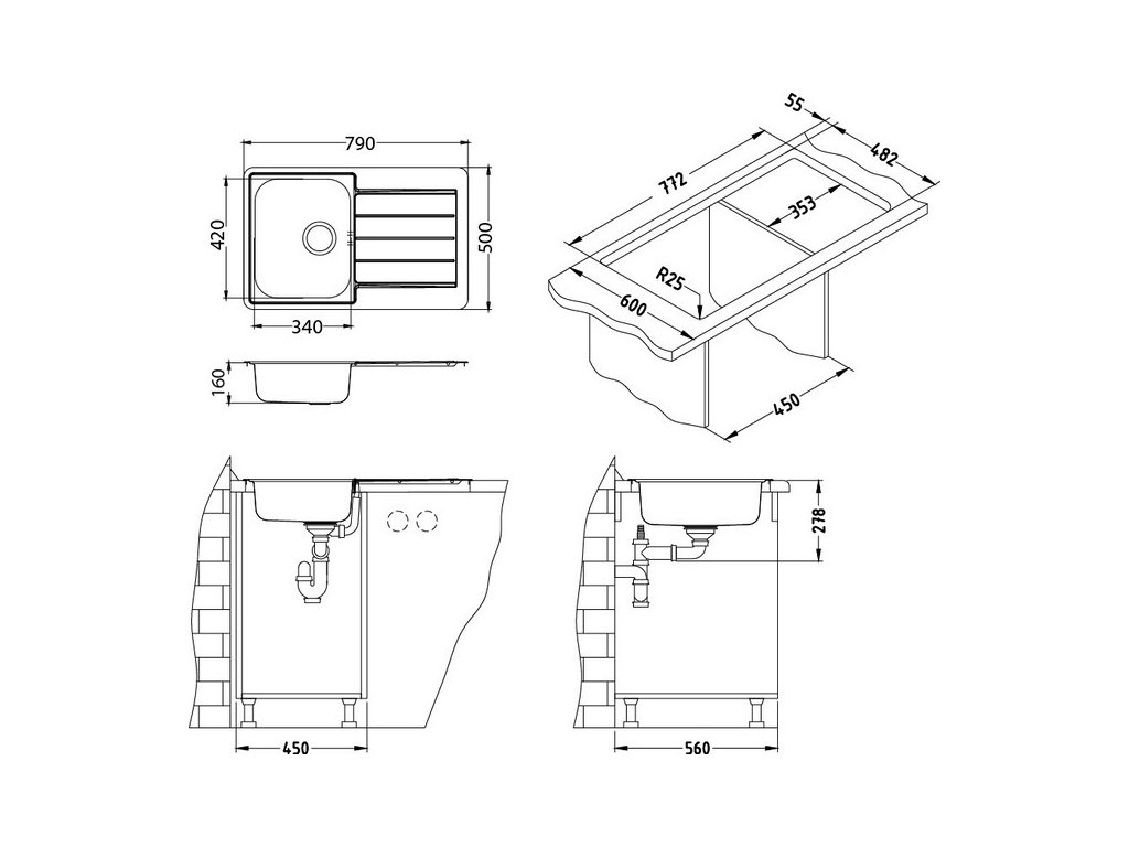Nerezový vestavný dřez vyrobený nejmodernější technologií z materiálu Cr Ni 18/10 největší jakosti. Tato potravinářská ocel s vysokým obsahem chrómu a niklu je nejvhodnější pro výrobu nerezových dřezů, mezi největší přednosti patří odolnost proti korozi i při narušeném povrchu, odolnost proti vysokým teplotám, odolnost vůči chemickým účinkům a nárazům, vysoká životnost a hygiena. Dřez se neloupe, nemůže prasnout a rozbít se. Je recyklovatelný v hutnické výrobě, tím je šetrný k životnímu prostředí. Povrch dřezu je hladký, rozměry dřezu - 79 x 50 cm, rozměr dřezové nádoby 34 x 42 x 15 cm. Dřezová plocha obsahuje odtok napojený na sifon, který je součástí balení. Součástí sifonu je i přípojka na myčku s kompletním montážním příslušenstvím. Dřez je vestavný do pracovní desky, která se pokládá na kuchyňskou skříňku pod dřez, která má šířku min. 45 cm. Dřez je reversibilní (dá se uložit z obou stran). V naší nabídce nabízíme vhodné vodovodní baterie.Doplňkové parametry