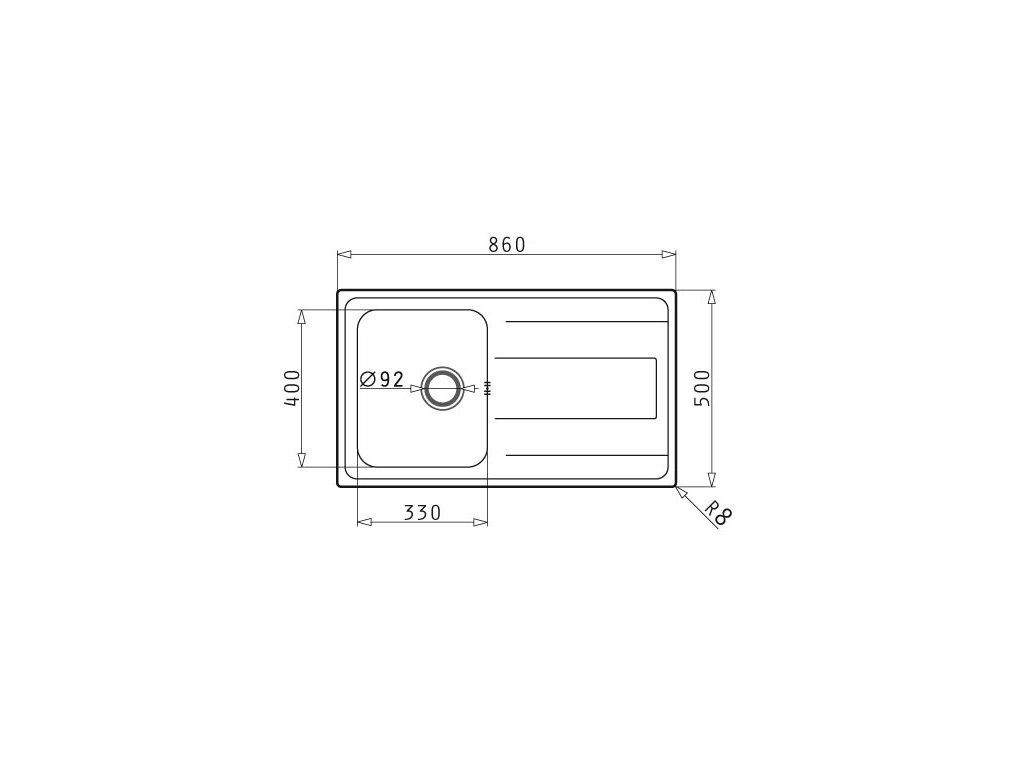 Nerezový dřez vyrobený nejmodernější technologií z materiálu Cr Ni 18/10 (DIN 1.4301) největší jakosti. Tato potravinářská ocel s vysokým obsahem chrómu a niklu je nejvhodnější pro výrobu nerezových dřezů, mezi největší přednosti patří odolnost proti korozi i při narušeném povrchu, odolnost proti vysokým teplotám, vysoká životnost a hygiena. Dřez se neloupe, nemůže prasknout a rozbít se. Je recyklovatelný v hutnické výrobě, tím je šetrný k životnímu prostředí. Povrch dřezu je hladký polished (leštěná nerez), rozměry dřezu - 86 x 50 cm, rozměr dřezové nádoby 33 x 40 x 19 cm. Součástí dřezu je kompletní příslušenství k montáži. V naší nabídce nabízíme vhodné vodovodní baterie.Doplňkové parametry