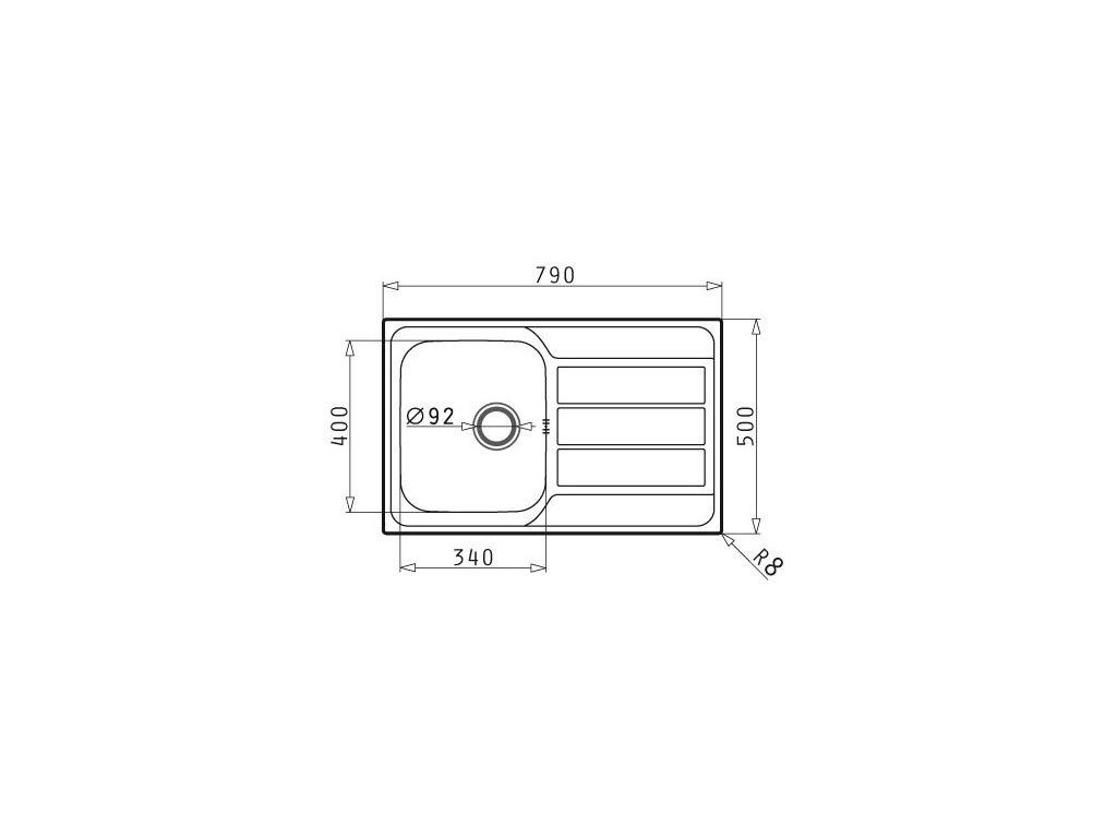 Nerezový dřez vyrobený nejmodernější technologií z materiálu Cr Ni 18/10 (DIN 1.4301) největší jakosti. Tato potravinářská ocel s vysokým obsahem chrómu a niklu je nejvhodnější pro výrobu nerezových dřezů, mezi největší přednosti patří odolnost proti korozi i při narušeném povrchu, odolnost proti vysokým teplotám, vysoká životnost a hygiena. Dřez se neloupe, nemůže prasknout a rozbít se. Je recyklovatelný v hutnické výrobě, tím je šetrný k životnímu prostředí. Povrch dřezu je hladký satin (matná nerez), rozměry dřezu - 79 x 50 cm, rozměr dřezové nádoby 33 x 40 x 18 cm. Součástí dřezu je kompletní příslušenství k montáži. V naší nabídce nabízíme vhodné vodovodní baterie.Doplňkové parametry