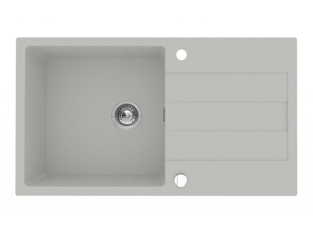 Pyragranitový dřez tvoří z 80% přírodní žula (silica), zbývajících 20% tvoří směs pryskyřic a jiných látek, které fungují jako pojivo. Pyragranite je homogenní povrch bez pórů, který zabraňuje hromadění bakterií, a proto váš dřez bude čistší a bezpečnější. Dřezy jsou odolné proti teplotám dosahujícím až 200° C. Vysoké procento minerálů ve směsi, činí pyragranitové dřezy velmi odolné proti poškrábání a opotřebení. Rozměry dřezu - 78 x 48 cm. Dřezová plocha obsahuje odtok napojený na sifon, který je součástí balení. Součástí balení jsou i přýchytky a obvodové těsnění. Vodovodní baterii lze instalovat, je třeba vyvrtat otvor. Dřez je vestavný do pracovní desky, která se pokládá na kuchyňskou skříňku pod dřez, která má šířku min. 50 cm. Barevné provedení - grey (šedá) - obrázek je ilustrační. Tento typ dřezu je dodáván včetně dřevěné krájecí desky. V nabídce máme také jiná barvená provedení. V našem sortimentu nabízíme vhodné vodovodní baterie.Doplňkové parametry