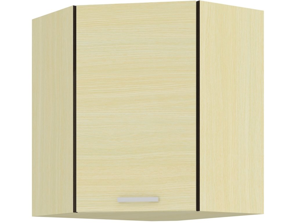 Horní skříňka rohová CHAMONIX II vyrobená z kvalitního lamina. Korpus i dvířka jsou v barvě dub ferrara. Rozměry skříňky - šířka 59 x 59 cm, výška 71,5 cm, hloubka 31 cm. Úchyty jsou z plastu. V naší nabídce naleznete další výběr skříněk k sestavení celé kuchyně.Doplňkové parametry