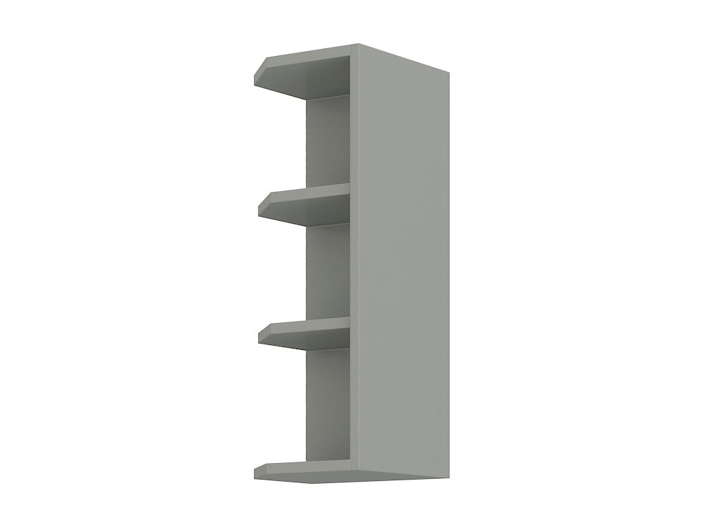 Otevřený horní roh KARMEN GREY na levou stranu linky vyrobený z kvalitního lamina. Korpus je v barvě šedá. Rozměry regálu - šířka 30 cm, výška 71,5 cm, hloubka 30 cm. Tento roh vytvoří elegantní zakončení vaší kuchyňské linky. V naší nabídce naleznete další výběr skříněk k sestavení celé kuchyně.Doplňkové parametry