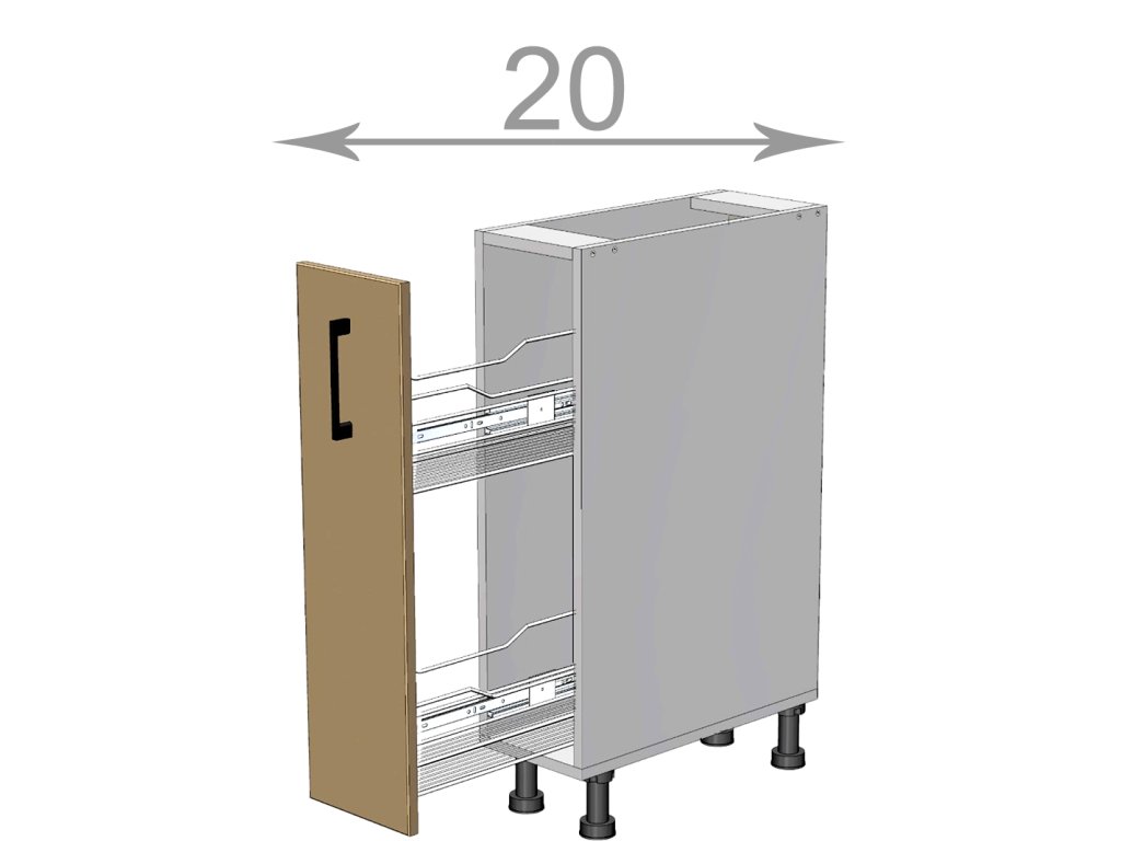 Kuchyňský sektor Capri, dolní cargo skříňka, šířka 20 cm, 1 dvířko, včetně výsuvného cargo koše, korpus dub Sonoma, dvířka grafit. Skříňka obsahuje drátěný výsuvný cargo koš, vhodný na uskladnění potravin, lahví a podobně. Představujeme vám kuchyňský sektor Capri - nejlevnější kuchyni s možností poskládat si vlastní kuchyňskou sestavu ze skříněk dle svých potřeb a prostoru. Kupujte chytře a výhodně! Kuchyňská linka na míru vás nemusí stát majlant. U kuchyně Capri máte na výběr víc jak 10 barev kuchyňských dvířek jak v dřevodekoru, tak v unikolorech. Zvolit si lze i barvu korpusu, takže výsledná kuchyňská linka na míru se bude krásně hodit do vaší kuchyně jak rozměrem tak barvou. Pracovní deska a sokl se objednávají zvlášť. Vyberte si u nás barvu pracovní desky a soklu tak, aby ladily Vaší kuchyni! Nožky jsou vysoké 10 cm (v ceně), v nabídce máme i nožky 15 cm. Výhodou je, že úchyty skříněk jsou součástí dvířek a tudíž jsou v ceně.Doplňkové parametry