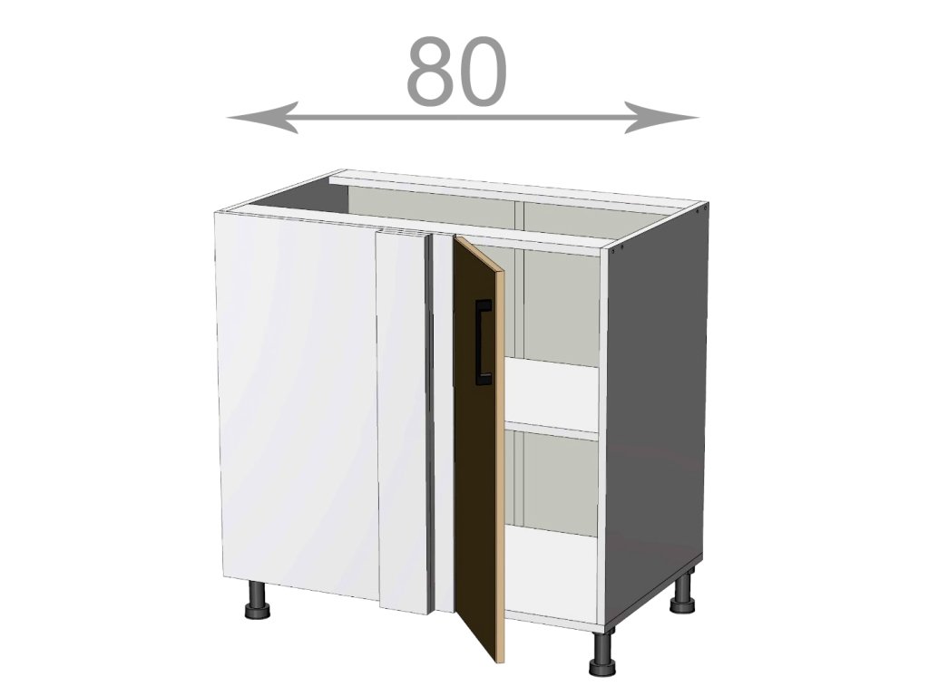 Kuchyňský sektor Capri, dolní rohová skříňka, šířka 80 cm, 1 dvířko, dvířka 30 cm, korpus dub Sonoma, dvířka grafit. Skříňka se umisťuje do rohu kuchyně a ze strany se pak přistavují další skříňky. Skříňka zabere délku kuchyně 90 cm, přičemž viditelná dvířka mají 30 cm šířku. Představujeme vám kuchyňský sektor Capri - nejlevnější kuchyni s možností poskládat si vlastní kuchyňskou sestavu ze skříněk dle svých potřeb a prostoru. Kupujte chytře a výhodně! Kuchyňská linka na míru vás nemusí stát majlant. U kuchyně Capri máte na výběr víc jak 10 barev kuchyňských dvířek jak v dřevodekoru, tak v unikolorech. Zvolit si lze i barvu korpusu, takže výsledná kuchyňská linka na míru se bude krásně hodit do vaší kuchyně jak rozměrem tak barvou. Pracovní deska a sokl se objednávají zvlášť. Vyberte si u nás barvu pracovní desky a soklu tak, aby ladily Vaší kuchyni! Nožky jsou vysoké 10 cm (v ceně), v nabídce máme i nožky 15 cm. Výhodou je, že úchyty skříněk jsou součástí dvířek a tudíž jsou v ceně.Doplňkové parametry