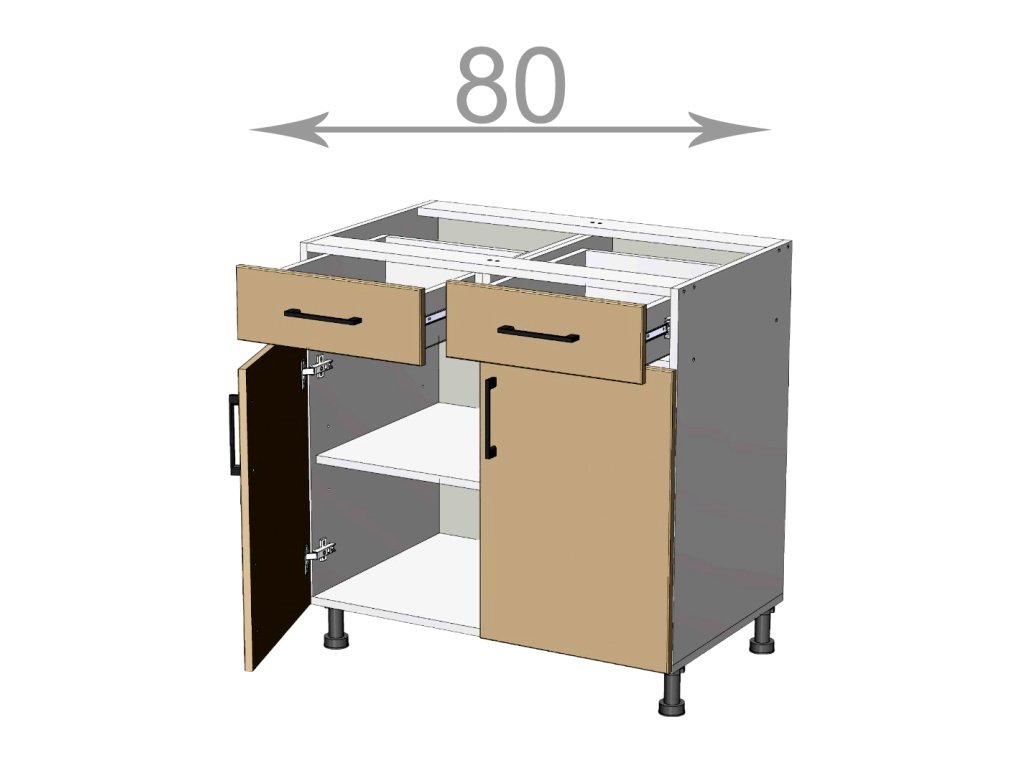Kuchyňský sektor Capri, dolní skříňka se šuplíky, šířka 80 cm, 2 šuplíky, 2 dvířka, korpus dub Sonoma, dvířka grafit. Velmi účelně řešená skříňka, která má dole dvířka a nad nimi dva šuplíky, ideální na příbory a menší kuchyňské potřeby. Představujeme vám kuchyňský sektor Capri - nejlevnější kuchyni s možností poskládat si vlastní kuchyňskou sestavu ze skříněk dle svých potřeb a prostoru. Kupujte chytře a výhodně! Kuchyňská linka na míru vás nemusí stát majlant. U kuchyně Capri máte na výběr víc jak 10 barev kuchyňských dvířek jak v dřevodekoru, tak v unikolorech. Zvolit si lze i barvu korpusu, takže výsledná kuchyňská linka na míru se bude krásně hodit do vaší kuchyně jak rozměrem tak barvou. Pracovní deska a sokl se objednávají zvlášť. Vyberte si u nás barvu pracovní desky a soklu tak, aby ladily Vaší kuchyni! Nožky jsou vysoké 10 cm (v ceně), v nabídce máme i nožky 15 cm. Výhodou je, že úchyty skříněk jsou součástí dvířek a tudíž jsou v ceně.Doplňkové parametry