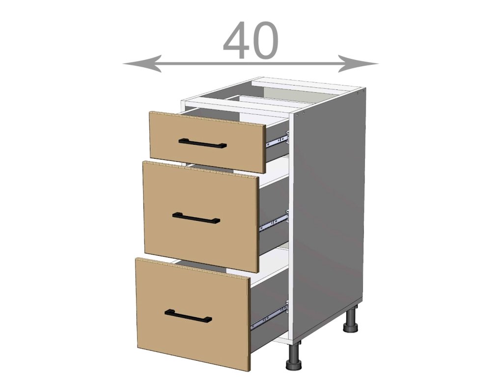 Kuchyňský sektor Capri, dolní šuplíková skříňka, šířka 40 cm, 3 šuplíky, korpus dub Sonoma, dvířka grafit. Skříňka má menší horní šuplík vhodný na příbory a pod ním dvě velké zásuvky na větší kuchyňské nádobí či menší spotřebiče. Představujeme vám kuchyňský sektor Capri - nejlevnější kuchyni s možností poskládat si vlastní kuchyňskou sestavu ze skříněk dle svých potřeb a prostoru. Kupujte chytře a výhodně! Kuchyňská linka na míru vás nemusí stát majlant. U kuchyně Capri máte na výběr víc jak 10 barev kuchyňských dvířek jak v dřevodekoru, tak v unikolorech. Zvolit si lze i barvu korpusu, takže výsledná kuchyňská linka na míru se bude krásně hodit do vaší kuchyně jak rozměrem tak barvou. Pracovní deska a sokl se objednávají zvlášť. Vyberte si u nás barvu pracovní desky a soklu tak, aby ladily Vaší kuchyni! Nožky jsou vysoké 10 cm (v ceně), v nabídce máme i nožky 15 cm. Výhodou je, že úchyty skříněk jsou součástí dvířek a tudíž jsou v ceně.Doplňkové parametry