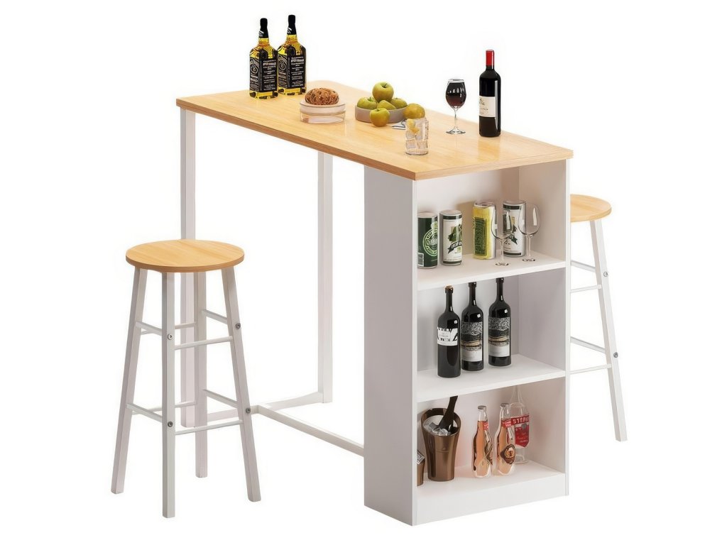 Stylová a praktická barová sestava 1+2, která kombinuje eleganci a funkčnost ve skandinávském stylu. Rozměr stolu: (D/Š/V) 120 x 55 x 100 cm. Rozměr stoliček: (V/Š) 70 x 30 cm. Barva: Bílá v kombinaci s dubem Sonoma. Materiál: kvalitní MDF s melaminovým povrchem, kovová konstrukce. Vybavení: Regál pro extra úložný prostor. Tato barová sestava nejen skvěle vypadá, ale praktický regál zároveň nabízí prostor pro vaše nápoje, knihy nebo dekorace. Jde o ideální volbou pro ty, kteří hledají moderní kus nábytku s dotekem severské elegance. Přidejte tento nádherný kousek do svého interiéru a vytvořte útulný prostor pro rodinu a přátele. Dodáváme v demontovaném stavu.Doplňkové parametry