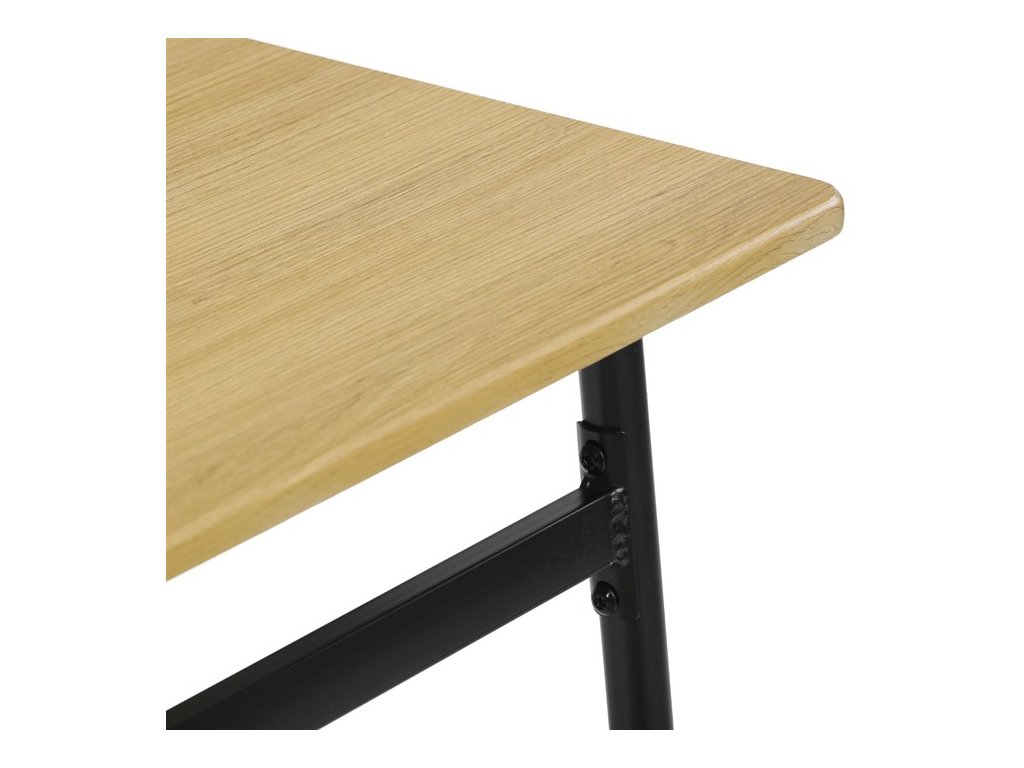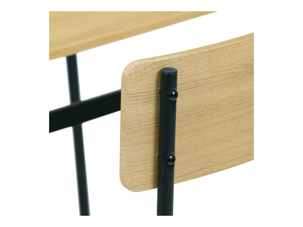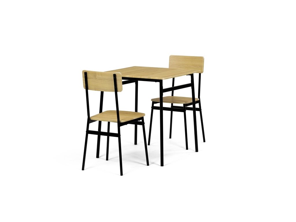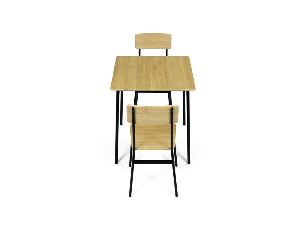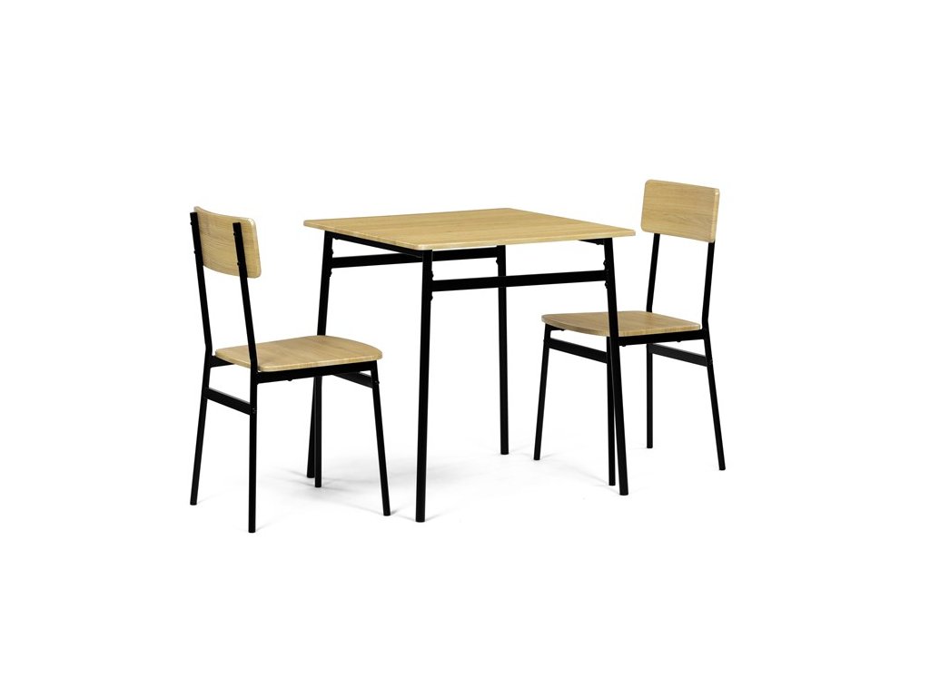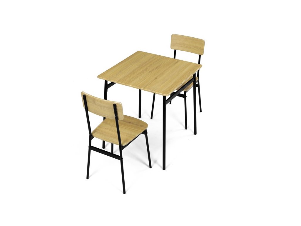 Tento jídelní set značky Autronic je ideální volbou pro menší prostory. Set obsahuje čtvercový stůl a dvě židle, které se svým industriálním designem dokonale hodí do moderních interiérů. Deska stolu i sedáky jsou vyrobeny z odolného MDF s dekorem divokého dubu. Černé kovové nohy dodávají sestavě stabilitu a moderní kontrast. Tento set je ideální pro dvě osoby a je vhodný zejména do menších jídelen nebo kuchyní. Montáž je snadná a rychlá, ideální řešení pro moderní bydlení.