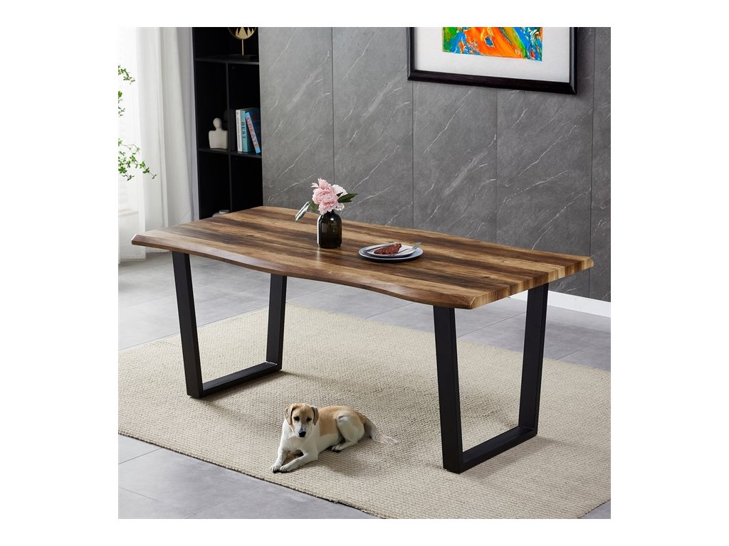 Jídelní stůl značky Autronic v industriálním stylu přinese do vaší jídelny výrazný designový prvek. Deska stolu v dekoru starého dřeva nabízí atraktivní strukturu a odolnost díky kvalitní MDF. Působivý vzhled je podtržen černými kovovými nohami, které poskytují stabilitu a vytvářejí moderní kontrast k odstínu starého dřeva desky. Atypický tvar desky dodává stolu originalitu, zatímco jeho pevná konstrukce zajišťuje dlouhou životnost. Tento stůl je ideální pro milovníky designu, kteří hledají spojení funkčnosti a stylu.