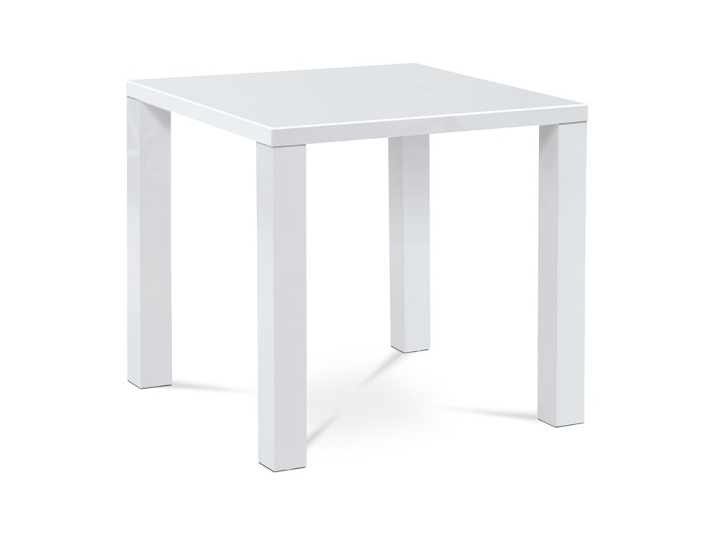 Jídelní stůl o rozměrech 80x80x76 cm nabízí moderní design v bílém vysokém lesku, který dodává prostoru svěží a čistý vzhled. Deska i nohy jsou vyrobeny z MDF materiálu s hladkým povrchem, který se snadno udržuje a je odolný vůči běžnému opotřebení. Zaoblené rohy zvyšují bezpečnost a přispívají k jemnějšímu vizuálnímu dojmu. Stabilní čtvercová konstrukce nohou zajišťuje pevnost a stabilitu během používání. Tento jídelní stůl je ideální volbou pro menší jídelny či kuchyňské kouty, kde oceníte kompaktní rozměry a jednoduchý styl.