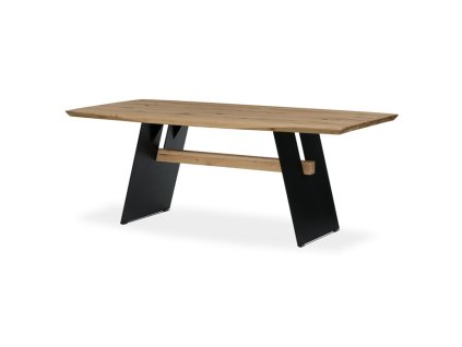 šířka: 200 cm | výška: 75 cm | hloubka: 100 cm Jídelní stůl o rozměrech 200x100x75 cm kombinuje masivní dubovou desku s olejovanou povrchovou úpravou a stabilní kovovou podnoží...