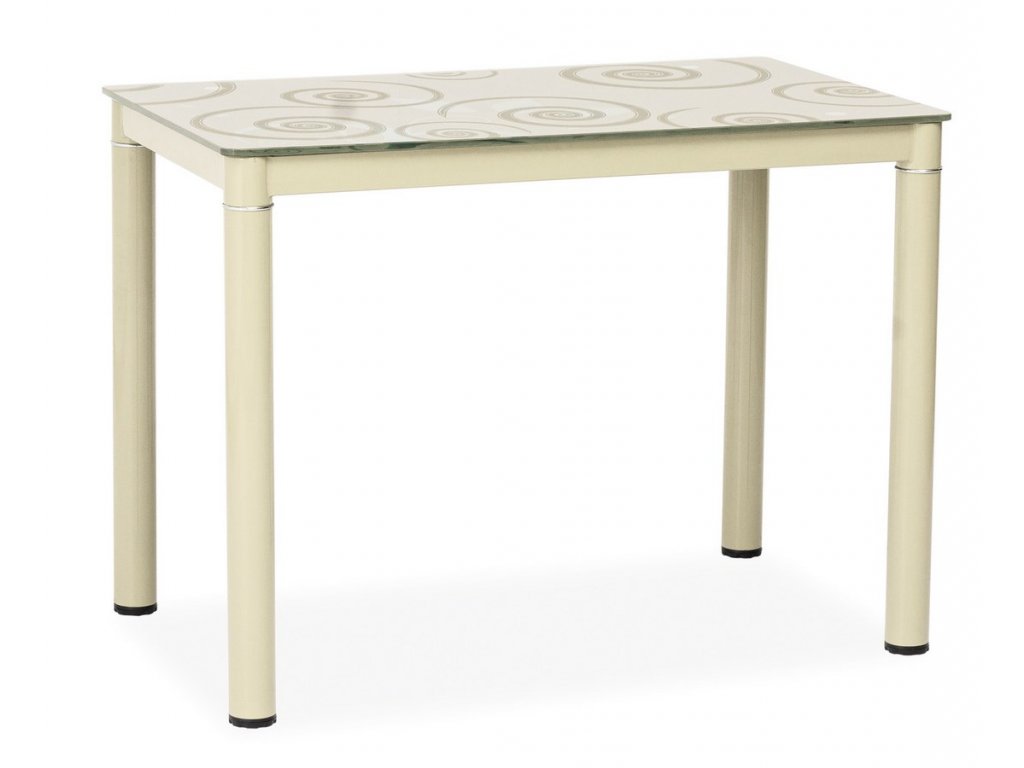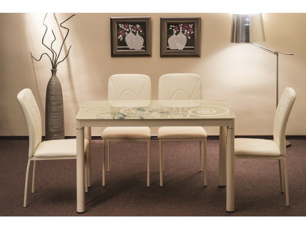 Moderní jídelní stůl v elegantním a praktickém provedení. Nohy stolu jsou vyrobeny z kovu, lakované bílou krémovou barvou, deska je z tvrzeného skla rovněž v bílé krémové barvě. Na desce stolu jsou jemné, velmi elegantní moderní kresby v bílých odstínech. Stůl je určen pro 4 osoby. K tomuto stolu doporučujeme židle z naší nabídky.Doplňkové parametry