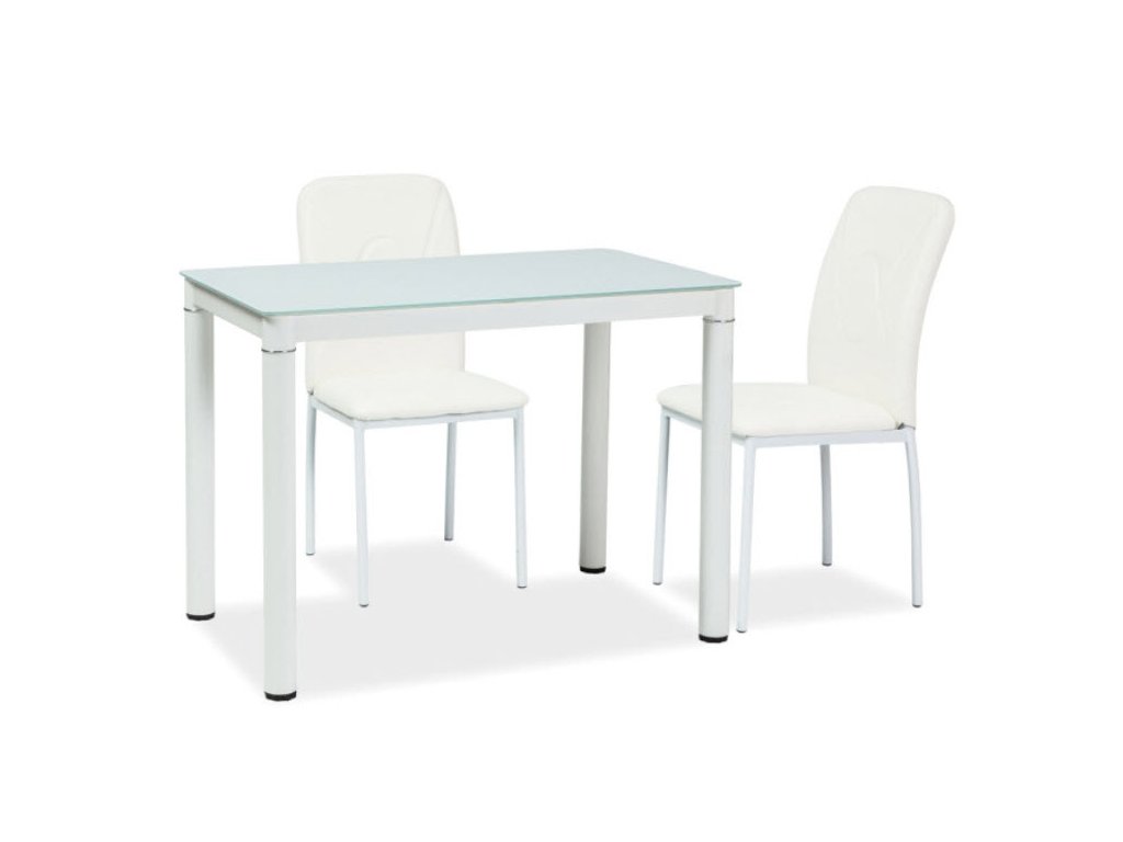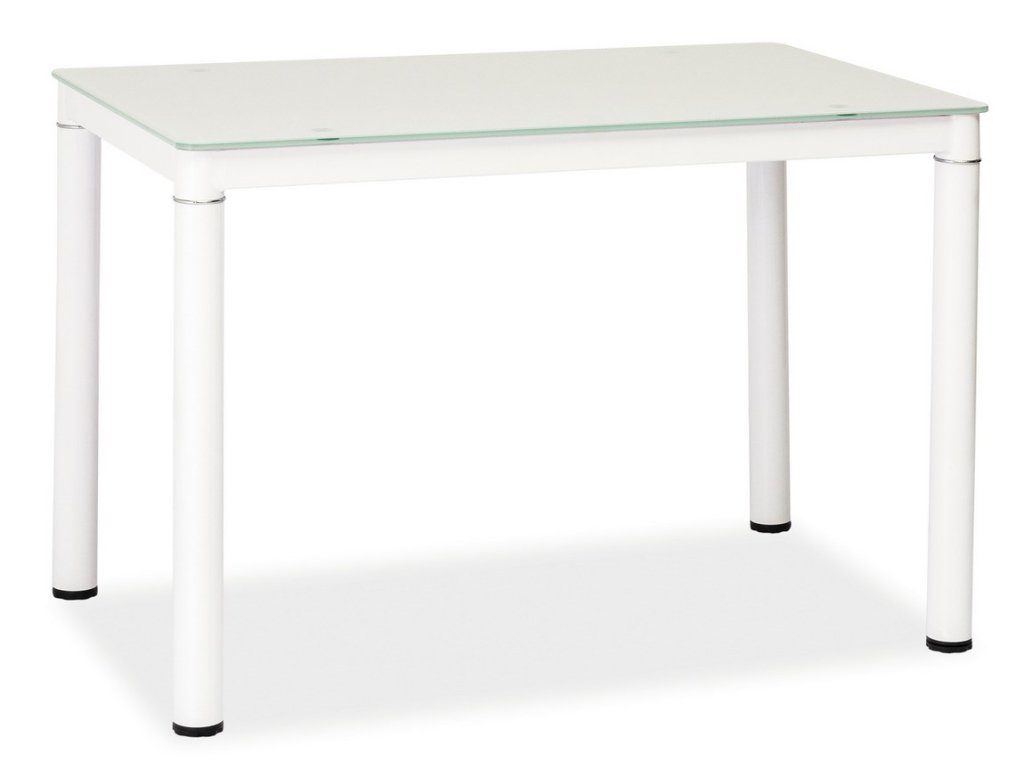 Moderní jídelní stůl v elegantním a praktickém provedení. Nohy stolu jsou vyrobeny z kovu, lakované bílou barvou, deska stolu je z tvrzeného skla v bílé barvě. Stůl je určen pro 4 osoby. K tomuto stolu doporučujeme židle z naší nabídky.Doplňkové parametry